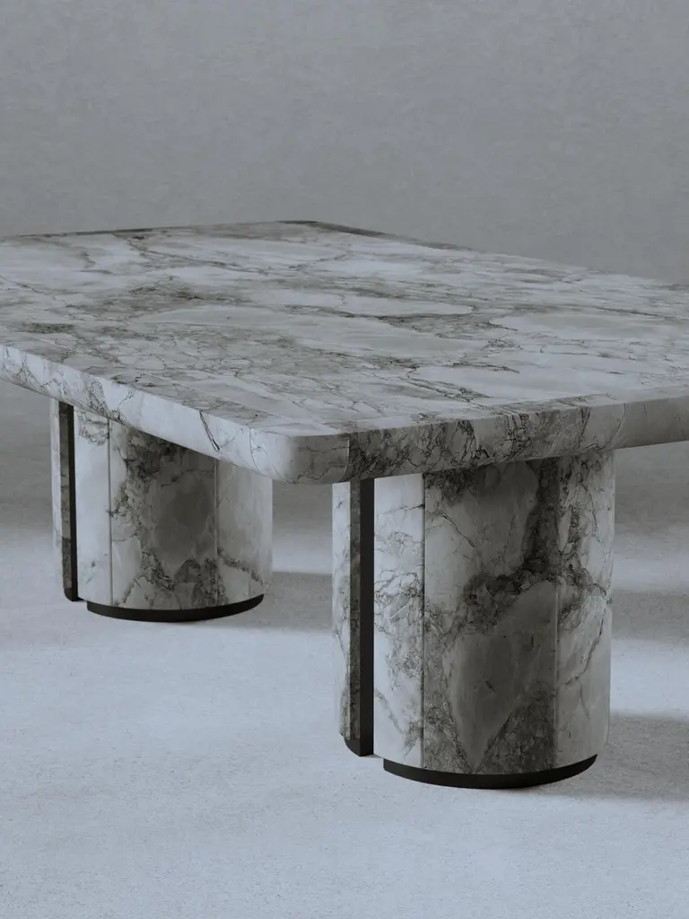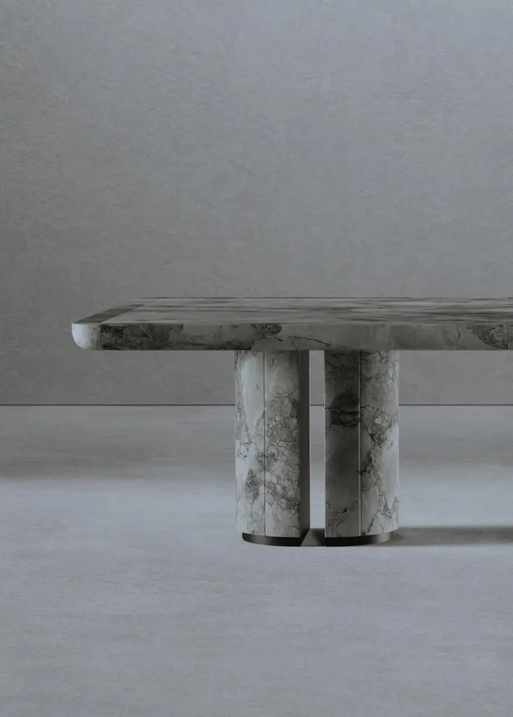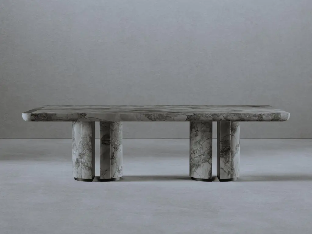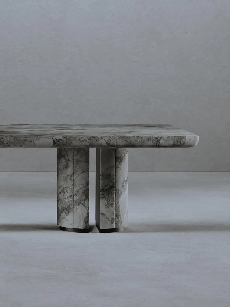 L'Alberto Dining Table by Gio PaganiDimensions: D 260 x W 150 x H 74 cm.Materials: Superwhite marble and matte black metal.In a fluid society capable of mixing infinite social and cultural varieties, the nostalgic search for reworked aesthetics that unite distant places, the desire for accents and refined materials, are the ingredients to create unique and timeless atmosphere.Gio Pagani is a multiple experience with a transversal and contaminated taste, which mixes designs rooted in memory, intercepting the new spirit of the times.“Being modern today means not having style barriers, being able to express eclectic languages and aesthetics, freely interpreting what affects you. As a designer, I immerse myself in a narrative experience, crafting objects that tell intimate stories. Drawing inspiration from diverse cultures and materials, i create an eclectic, romantic aesthetic that weaves together the past and the present.In this fluid society, nostalgia meets reimagined beauty, blending distant influences with soulful shapes and exquisite materials. Each piece I create is a harmonious symphony of proportions and a tribute to the memories that inspire me. From here I collect, rework, transform. It is an intimate journey where romance intertwines with rawness, luxury with simplicity, and tradition with daring, revealing a timeless beauty that transcends conventions.My philosophy is based on the charm of “disciplined excesses”. It is an elegance that is tinged with the barbaric, the luxury of not worrying.”
