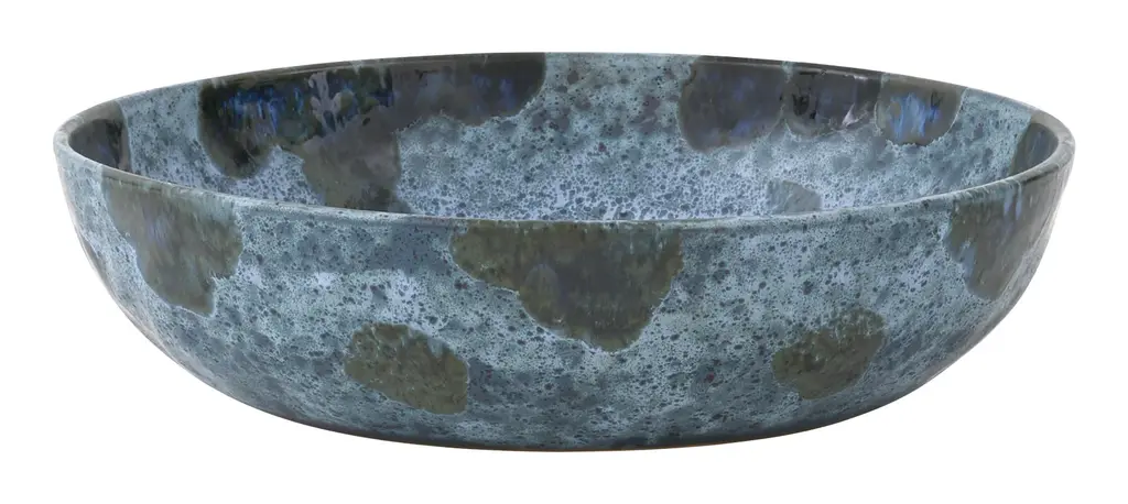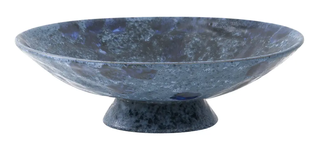 Bring a splash of color to the table with our one-of-a-kind Lambi Serveware Collection. These gorgeous dishes are crafted from ceramic into simple, classic shapes and covered with a glossy reactive glaze in stunning shades of light and dark, inky blue, accented with splotches of vibrant cerulean that make each one unique. Perfect for serving up a summer salad or hearty side dish in the dining room, these versatile vessels can also double as generously-sized catchalls on a well-styled console, coffee table or bookshelf. •ceramic •blue reactive glaze•food safe •hand wash only Dimensions:•Bowl: 12.25" diameter x 3"H•Compote: 15.25" diameter x 4.5"H