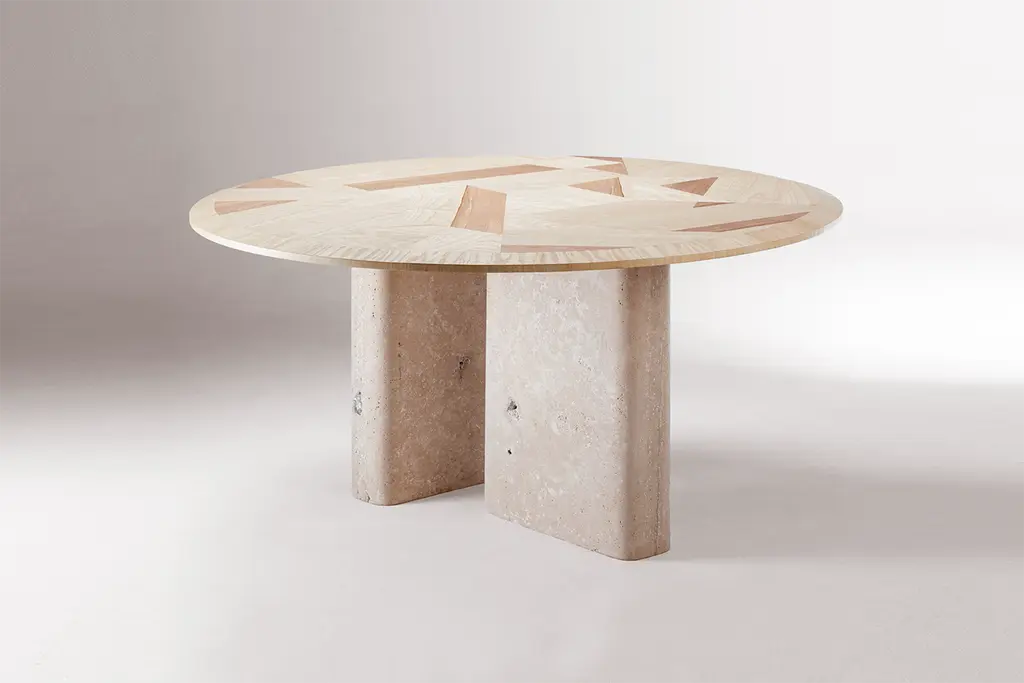 L’anamour is a dining table where the connection between the base and the top is as perfect as a poet-muse relationship, with emotions flying high and low but ultimately resulting in passionate adoration and deeper connection. Natural wood marquetry and exquisite travertine provide the perfect combination of carefree and refined style to L’anamour.