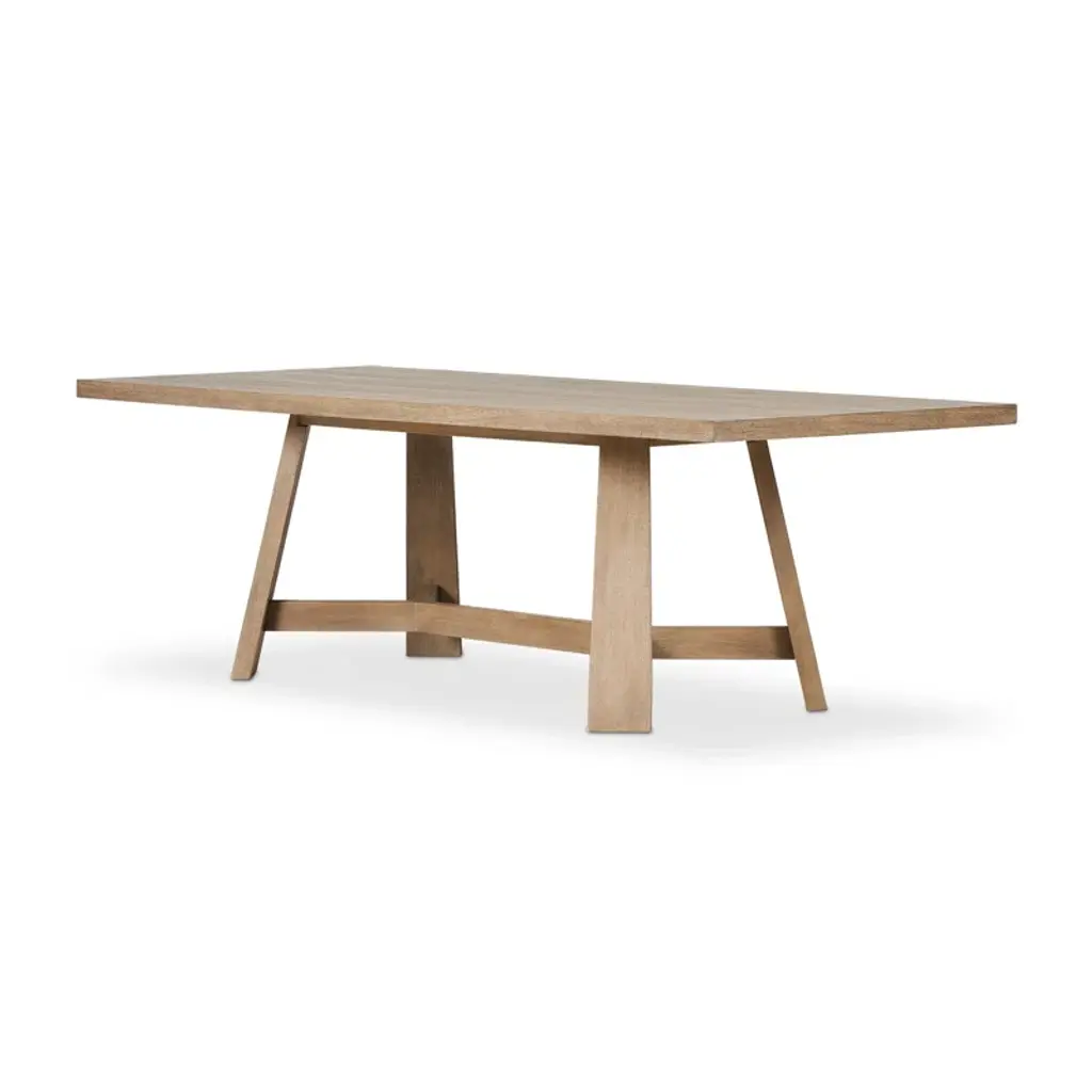 A modern farmhouse design reimagined, the Landon Rectangular Dining Table is the perfect fit for meals and more. And the rounded legs and textural fabric add to the welcoming charm.