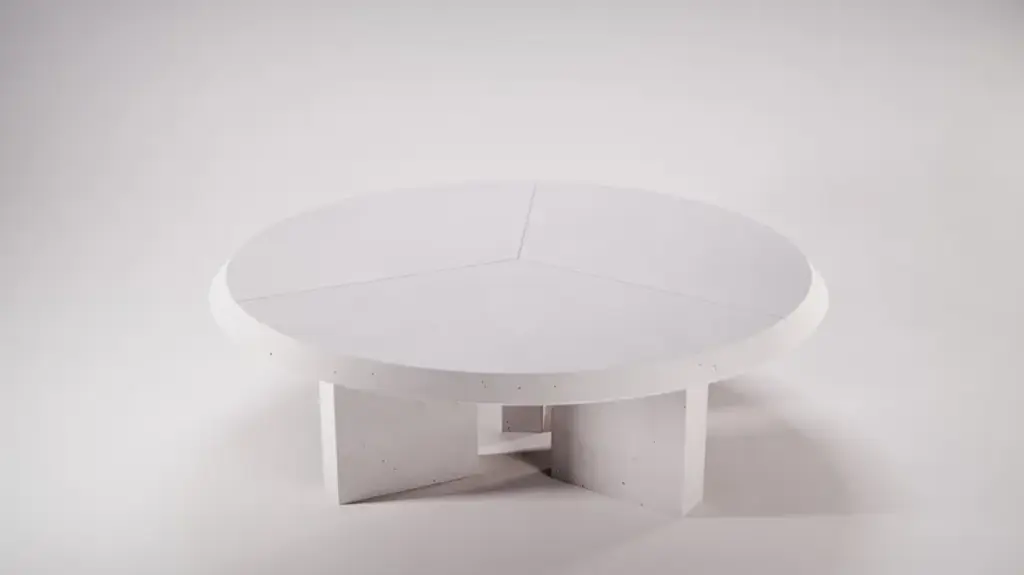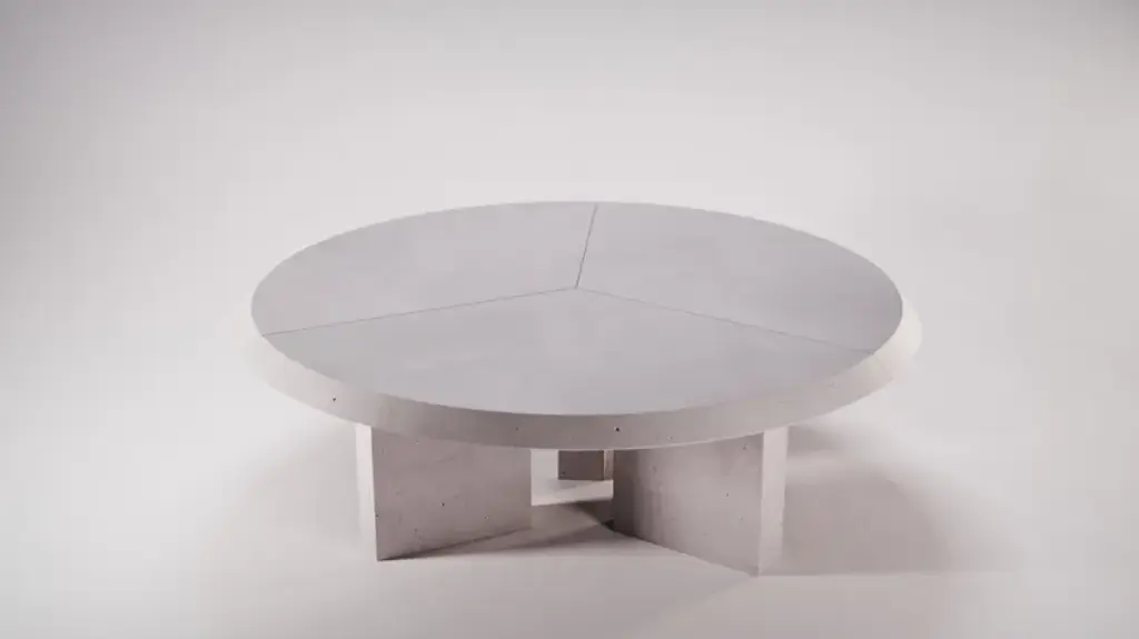 Laoban is a dining table which takes inspiration from the Asian aesthetic. Laoban was born from the desire to give importance and stability to the convivial moments that we savor every day. Strongly inspired, in the circular shape and in the aesthetic details it embodies, by the Eastern tradition of "sitting at the table", it also underlines its inspiration in its name which in Mandarin means "master" precisely to underline its role as guardian of the solid values of inhabiting. With a diameter of 200 cm, it is table to comfortably accommodate up to 10 people: it is therefore the moment of union, the figure that informs this table. With a concrete top made of three different cloves which all together create a perfectly round shape. This piece, handmade in UHPC concrete mortar and combined with three sturdy legs leads the way to an infinite number of possibilities and combinations overcoming the monolithic structure.Colours: Silver, Ardesia, White.