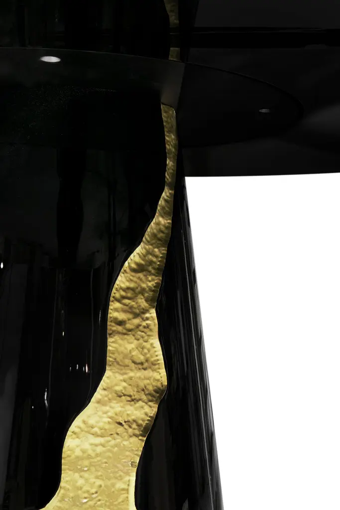 Great Empire’s take centuries to build, and those who rise after taking a fall find their true strength. It goes without saying that great decisions are taken around powerful tables among determined minds. The Lapiaz dining table symbolizes generations of gatherings and decisions, both in times of celebration or tension. Its cracks reflect tough times, revealing a gold interior in a manifesto towards power. Flawless and bright, the remaining surface points towards a thriving future, reminding one to toast to prosperity.