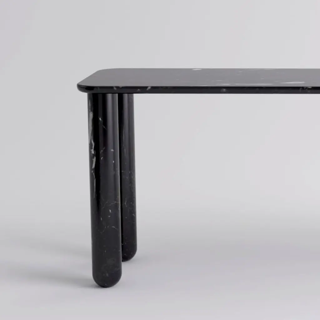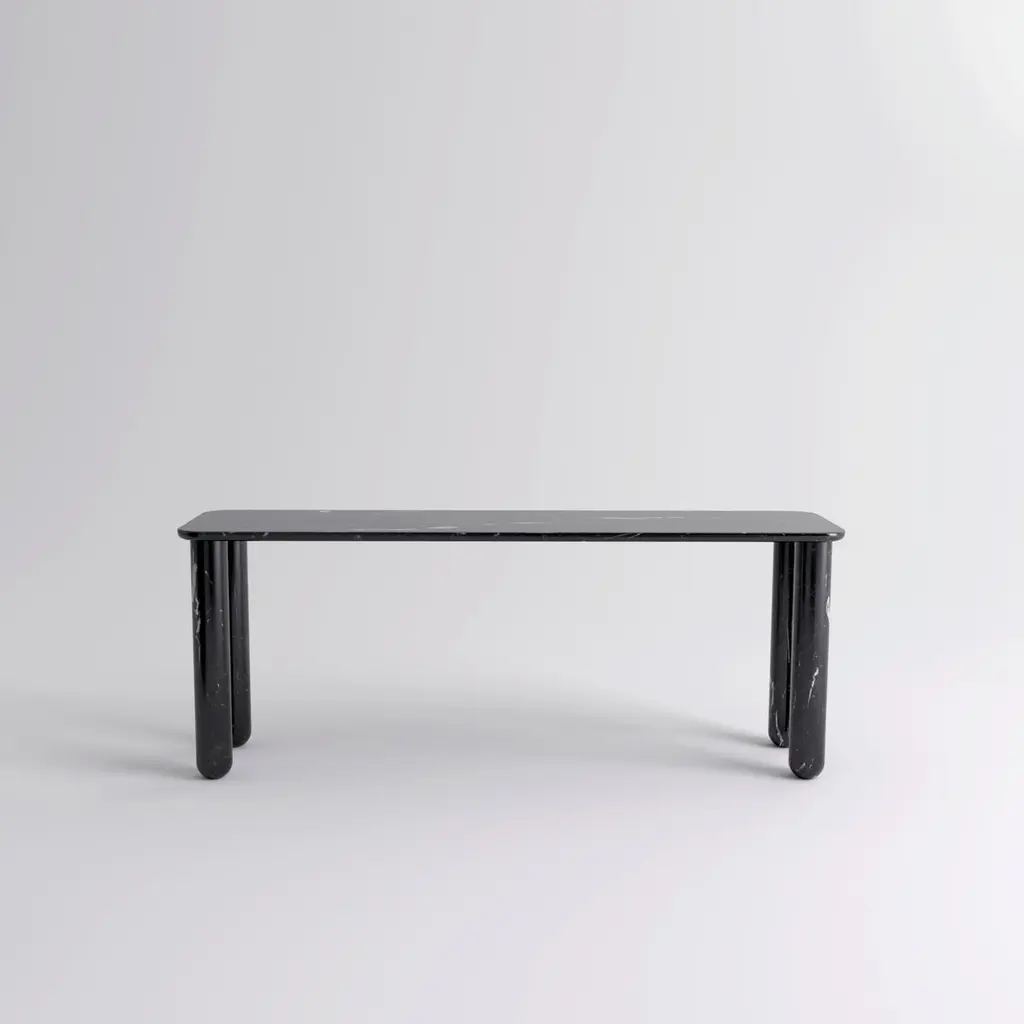 Large Black Marble "Sunday" dining table - Jean-Baptiste SouletieDimensions: 200 W x 50 D x 74.5 H cmMaterials: Black Marquina marble.Different finishes and sizes are available.Sunday is a family of dinner tables, coffee tables and consoles with a simple and sculptural design. The mix of heavy marble legs and a thin solid wood top creates an interesting contrast while the rounded edges and generous proportions provide a comforting feeling.Sunday is all about the materials: 3 marbles and 2 woods are available in the collection.Sunday comes in a wide variety of dimensions and 2 different marble legs heights to perfectly fit your interior whether you need a small coffee table, a large one, a console, or even a dinner table that will seat 10 guests on a friendly Sunday lunch.Jean-Baptiste Souletie is the Co-founder of the furniture editor La Chance with Louise Breguet. He studied in India, worked for a merchant bank in London (where he designed their new offices), before working for an investment fund (where he redevised the graphic chart), and in the strategic department of a luxury goods company in Paris. He returned to his first loves, architecture and furniture, when he founded La Chance in 2012.