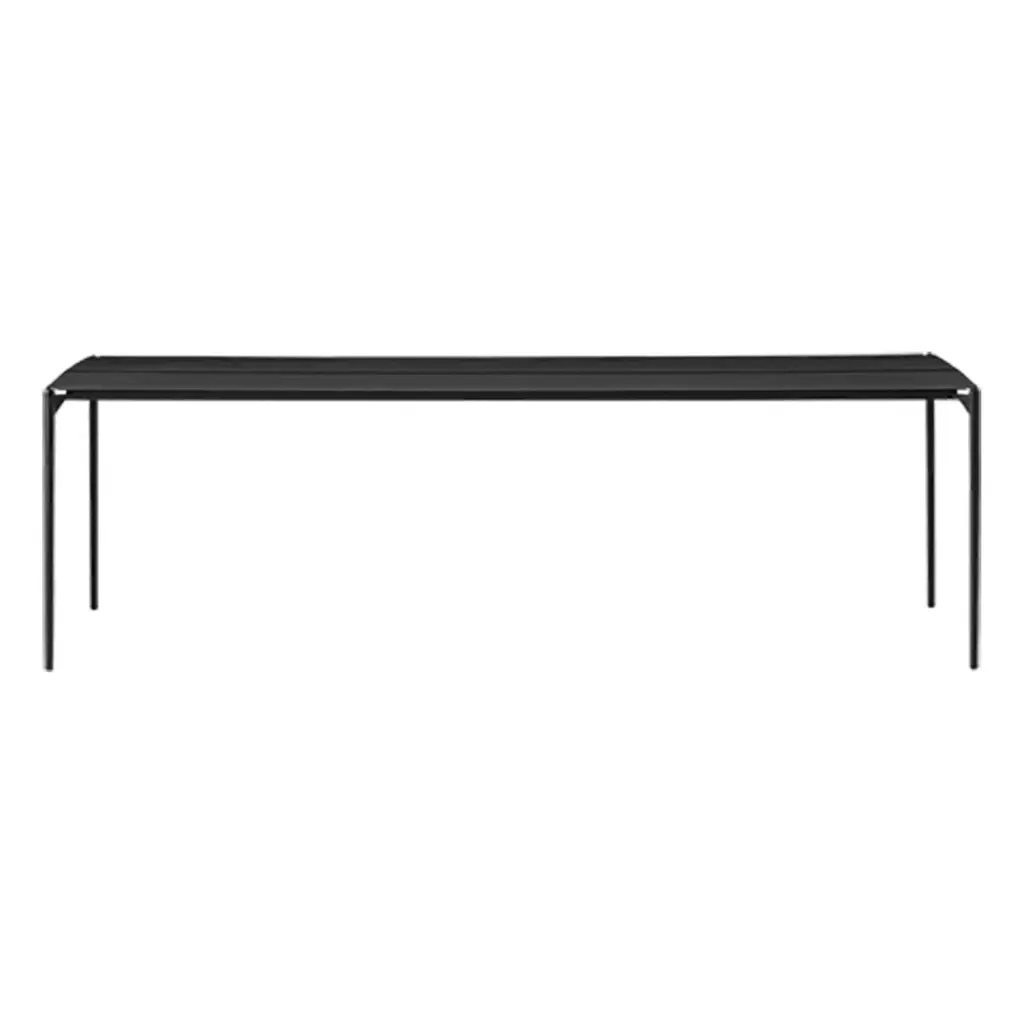 Large Black Minimalist tableDimensions: D 240 x W 90 x H 72 cm Materials: Steel w. Matte Powder Coating & Aluminum w. Matte Powder Coating.Available in colors: Taupe, Bordeaux, Forest, Ginger Bread, Black and, Black and Gold.Bring elegance inside the home. Place the NOVO table in the dining room and use it as your everyday dining table, or outdoors on the terrace. With its stunning curves, the NOVO collection draws references to the old Danish furniture classics — keeping the internationally inspired brand AYTM connected to its Danish roots. NOVO is designed by Danish designer Rasmus Falkenberg, who has been working within the field of design since 2001 and has won several awards for his incredible work. For 10 years he was the co-founder & owner of design-people who have received 20 international design awards. The Novo collection is the winner of the German Design award 2021. The jury wrote this in their statement about the Novo dining table: "The filigree styling of the table looks pleasantly light-weight and timelessly modern. The golden connections are a beautiful detail, which also featured on the chairs and in this way elegantly illustrate the coherence of the series."