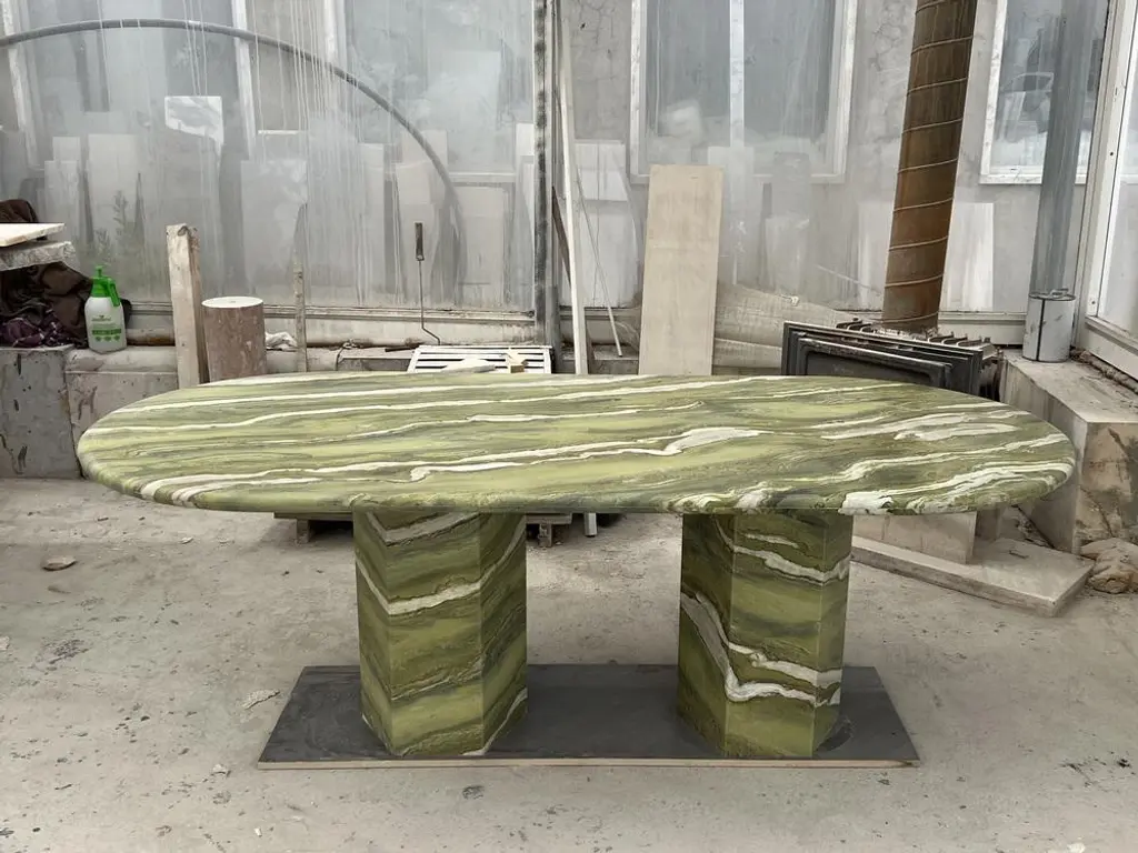 Large Green Marble Oval Dining Table By My Habitat Design