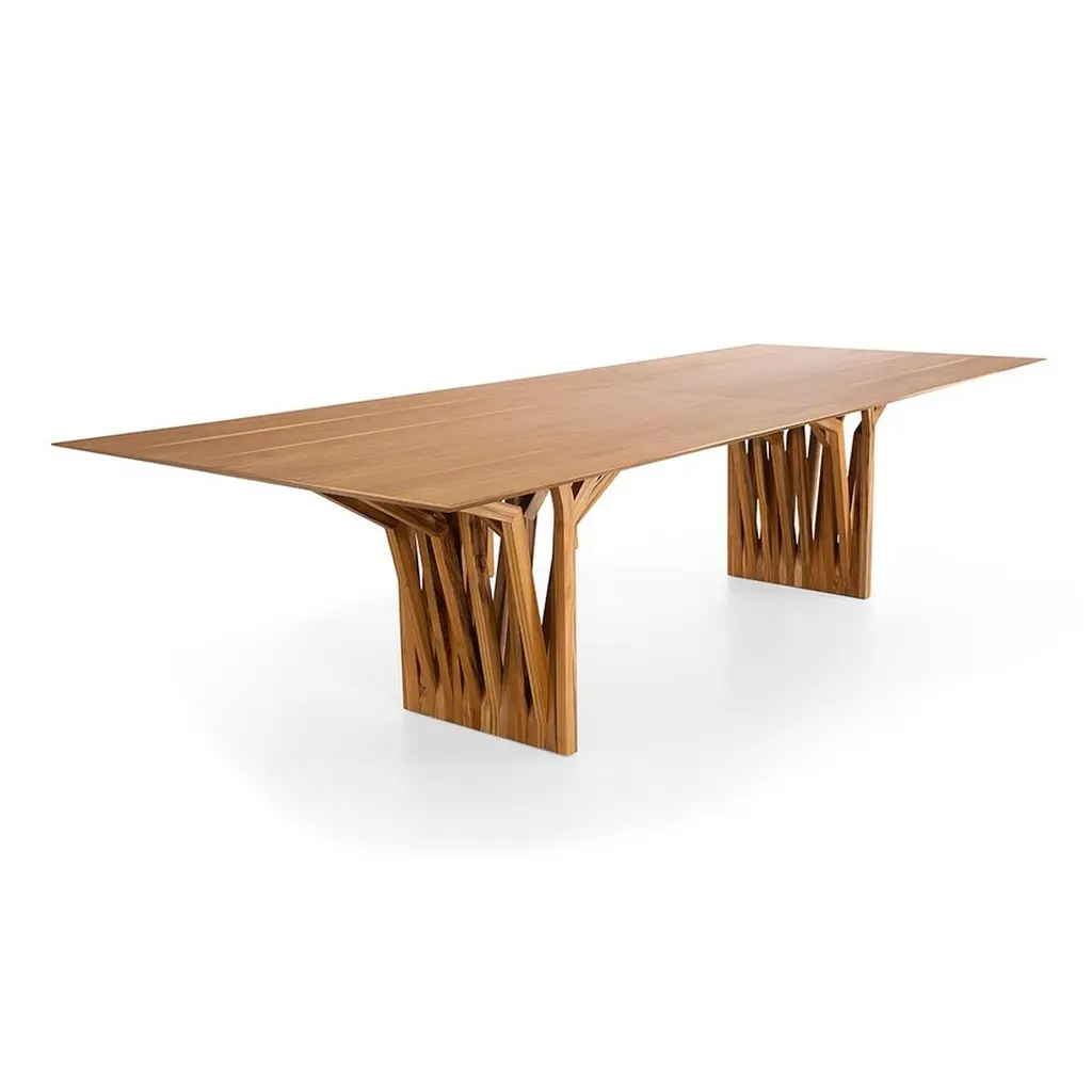 Large Teak Wood Top Radi Dining Table With Architectural And Cascading Root Base