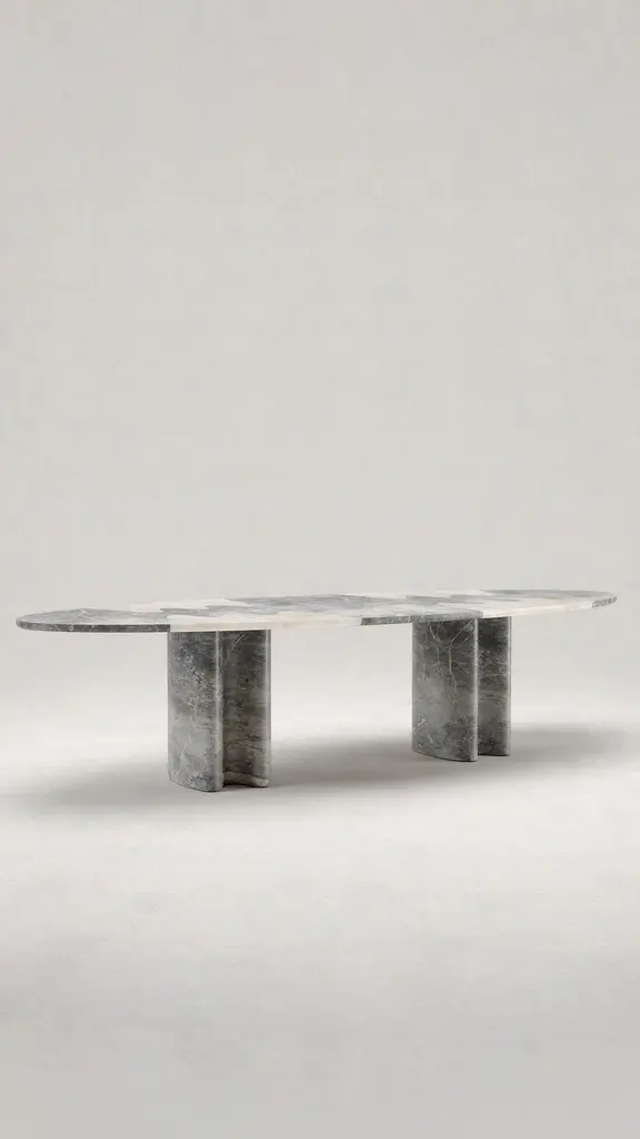 Lavanche dining table by Piotr DabrowaOne of a kind.Dimensions: W 300 x D 120 x H 72 cm.Materials: Fior di Bosco marble, white Onyx.Produced by Serafini.Piotr Dabrowa (1990). Multidisciplinary Designer focused on the collectible design of lighting & furniture.He creates imagination-driven products in modern, clean aesthetics & functional form. The works convey a deep love for the art of living and give its users a unique experience, sensual pleasures and constitute the visual character of an interior. Surreal & forward-looking still-life visuals showcasing the products are complementing their uniqueness by giving them a new dimension in the digital world.From 2011 he was working in the Graphic Design field and later in the product design field in Poland and in China. To focus on his ideas, he established Studio-Dabrowa in 2020. He works on developing, bringing to life collectible designs and cooperating with factories in Asia and in Europe while completing his Master’s Degree at the Academy of Fine Arts in Wroclaw. His works are available through selected Galleries.