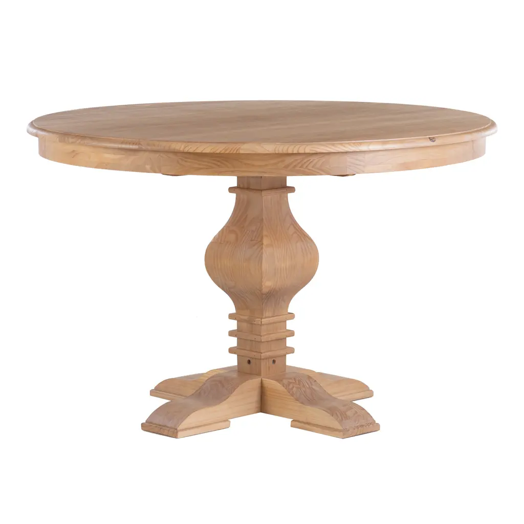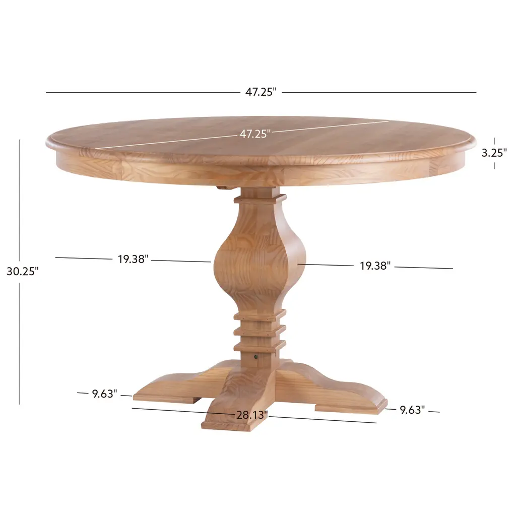 Lawrence Round Natural Pine Pedestal Farmhouse Dining Table
