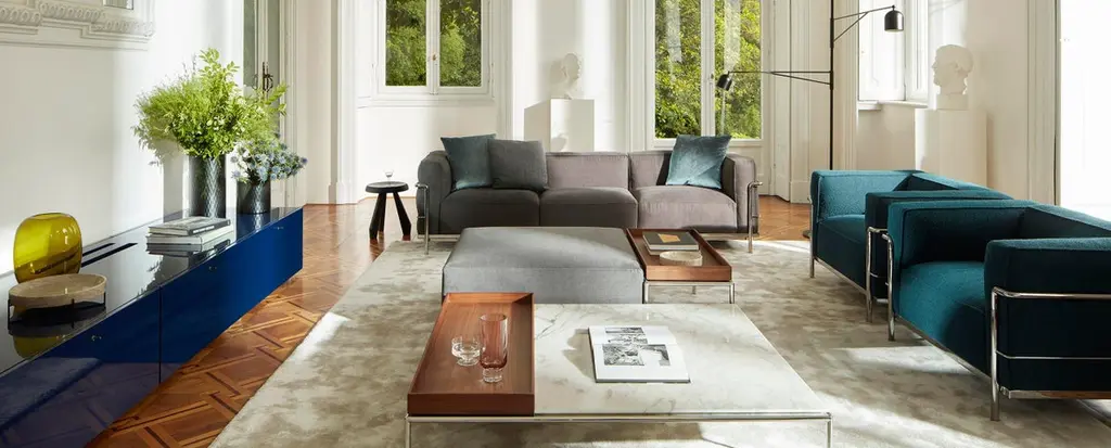 Armchair designed by Le Corbusier, Pierre Jeanneret, Charlotte Perriand in 1928. Relaunched in 2020.Manufactured by Cassina in Italy.The LC3 implements the logic of modernity separating the supporting metal frame from its padded elements like the architectural relationship between the concrete supporting structure and its buffering elements. The model has been updated in an ecological version that respects both the original design and nature, which has always been a constant source of inspiration for Le Corbusier, Pierre Jeanneret and Charlotte Perriand. Thanks to the study carried out by Cassina LAB, a collaboration between the Cassina Research and Development Centre and Poli.design at the Milan Polytechnic, the foamed elements have been integrated with eco-compatible polyols, deriving from bio-renewable sources, and a blown fibre, obtained from PET mainly recovered from the sea, has been introduced into the padding of the cushions and seats to make it more comfortable and environmentally sensitive. The tubular frame of the Fauteuil Grand Confort Durable is in brushed nickel with a semi-opaque finish, a material that stands out for its more sustainable production process. These ecological options are available for all models of the LC3 armchair and sofa.Important information regarding images of products:Please note that some of the images show other colors and variations of the model, these images are only to present interior design proposals. The item that is selling is on the first image. Important information regarding color(s) of products:Actual colors may vary. This is due to the fact that every computer monitor, laptop, tablet and phone screen has a different capability to display colors and that everyone sees these colors differently. We try to edit our photos to show all of our products as life-like as possible, but please understand the actual color may vary slightly from your monitorAbout the designer:In 1922, Le Corbusier began working in the new rue de Sèvres, Paris, atelier with his cousin Pierre Jeanneret with whom he shared research projects and design criteria in a profound and life-long professional relationship.In October 1927, the pair decided to draw on the contribution of a young architect who had already begun to establish a reputation on the architectural scene of the time: Charlotte Perriand. Their collaboration lasted through to 1937 and was extremely fruitful, especially in the field of furniture design. The partnership was highly significant, both in terms of the cultural weight of their achievements and their professional successes.It was together with Charlotte Perriand that the pair tackled the innovative project for “l’équipement d'intérieur de l’habitation”. The resulting designs were of great intellectual value and considerable commercial success. About the manufacturer:In a continuing dialogue between past, present, and future, Cassina has created the I Maestri collection, revisiting furnishing designs by the twentieth century’s best-known architects, including Le Corbusier, Pierre Jeanneret, Charlotte Perriand, Charles Rennie Mackintosh, Gerrit Thomas Rietveld, Franco Albini, Frank Lloyd Wright and Marco Zanuso. While the designs and functional concepts have been precisely preserved, the models have been manufactured using evolved technology. This is also the company that has manufactured iconic pieces of contemporary design from the 50’s to the present day, ideated by some of the most important international designers. Today Cassina continues to look to the future of design with audacious, passionate curiosity and an open, holistic approach. It affirms its exclusive ability to furnish a home’s living and dining spaces completely and iconically with The Cassina Perspective: a concept, a philosophy, an informed, futuristic thought. A detailed, expansive horizon of combinations; when placed together, the products have an innovative soul and the modern icons create authentic, welcoming, personal atmospheres involved in a conversation dominated by a code of design excellence, formal sensitive awareness, solidity and cultural authority.