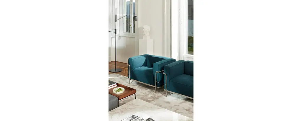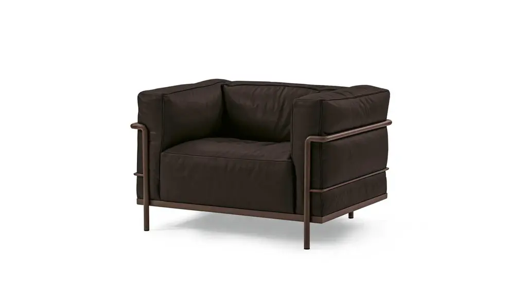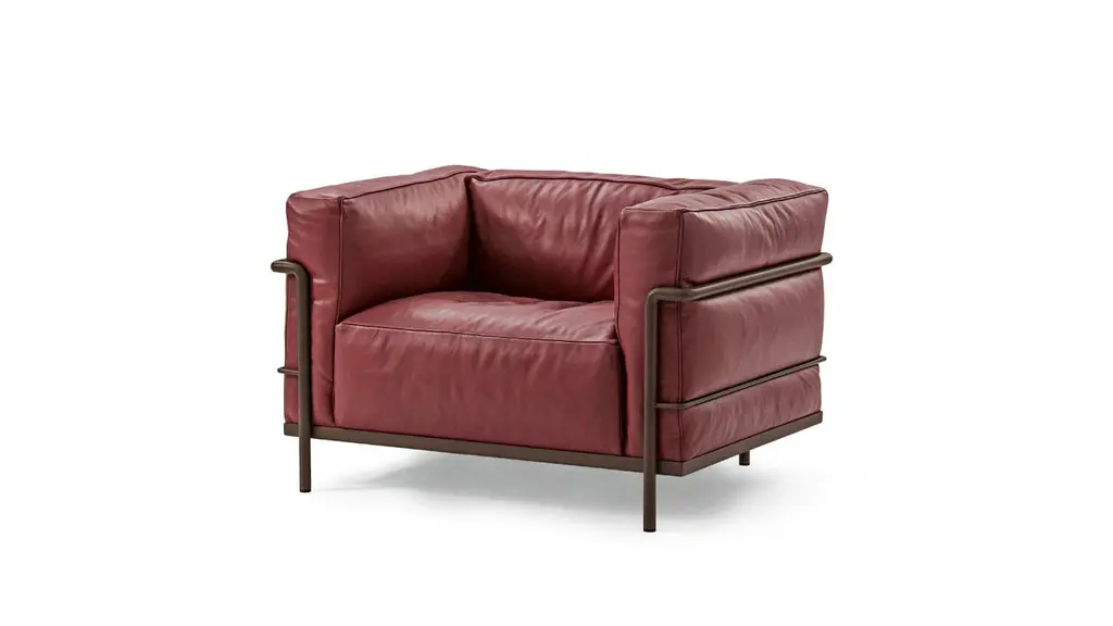 Armchair designed by Le Corbusier, Pierre Jeanneret, Charlotte Perriand in 1928. Relaunched in 2020.Manufactured by Cassina in Italy.The LC3 implements the logic of modernity separating the supporting metal frame from its padded elements like the architectural relationship between the concrete supporting structure and its buffering elements. The model has been updated in an ecological version that respects both the original design and nature, which has always been a constant source of inspiration for Le Corbusier, Pierre Jeanneret and Charlotte Perriand. Thanks to the study carried out by Cassina LAB, a collaboration between the Cassina Research and Development Centre and Poli.design at the Milan Polytechnic, the foamed elements have been integrated with eco-compatible polyols, deriving from bio-renewable sources, and a blown fibre, obtained from PET mainly recovered from the sea, has been introduced into the padding of the cushions and seats to make it more comfortable and environmentally sensitive. The tubular frame of the Fauteuil Grand Confort Durable is in brushed nickel with a semi-opaque finish, a material that stands out for its more sustainable production process. These ecological options are available for all models of the LC3 armchair and sofa.Important information regarding images of products:Please note that some of the images show other colors and variations of the model, these images are only to present interior design proposals. The item that is selling is on the first image. Important information regarding color(s) of products:Actual colors may vary. This is due to the fact that every computer monitor, laptop, tablet and phone screen has a different capability to display colors and that everyone sees these colors differently. We try to edit our photos to show all of our products as life-like as possible, but please understand the actual color may vary slightly from your monitorAbout the designer:In 1922, Le Corbusier began working in the new rue de Sèvres, Paris, atelier with his cousin Pierre Jeanneret with whom he shared research projects and design criteria in a profound and life-long professional relationship.In October 1927, the pair decided to draw on the contribution of a young architect who had already begun to establish a reputation on the architectural scene of the time: Charlotte Perriand. Their collaboration lasted through to 1937 and was extremely fruitful, especially in the field of furniture design. The partnership was highly significant, both in terms of the cultural weight of their achievements and their professional successes.It was together with Charlotte Perriand that the pair tackled the innovative project for “l’équipement d'intérieur de l’habitation”. The resulting designs were of great intellectual value and considerable commercial success. About the manufacturer:In a continuing dialogue between past, present, and future, Cassina has created the I Maestri collection, revisiting furnishing designs by the twentieth century’s best-known architects, including Le Corbusier, Pierre Jeanneret, Charlotte Perriand, Charles Rennie Mackintosh, Gerrit Thomas Rietveld, Franco Albini, Frank Lloyd Wright and Marco Zanuso. While the designs and functional concepts have been precisely preserved, the models have been manufactured using evolved technology. This is also the company that has manufactured iconic pieces of contemporary design from the 50’s to the present day, ideated by some of the most important international designers. Today Cassina continues to look to the future of design with audacious, passionate curiosity and an open, holistic approach. It affirms its exclusive ability to furnish a home’s living and dining spaces completely and iconically with The Cassina Perspective: a concept, a philosophy, an informed, futuristic thought. A detailed, expansive horizon of combinations; when placed together, the products have an innovative soul and the modern icons create authentic, welcoming, personal atmospheres involved in a conversation dominated by a code of design excellence, formal sensitive awareness, solidity and cultural authority.