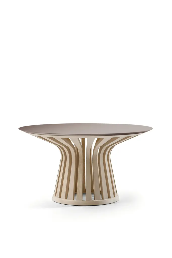 Lebeau wood table by Patrick Jouin Manufactured by Cassina in ItalyLebeau wood is an evolution of the iconic and innovative Lebeau table. While the original's dimensions and outline are maintained, solid wood becomes the material of choice for the base. Employing six hours, the intricate construction process harnesses the skills of Cassina's carpenters, who oversee every stage of the process, to the potential provided by the latest and most innovative machinery. The base, on which sits the table-top, is composed of 22 staves derived from solid curved ashwood, slotted into two "crowns", at top and bottom. The outcome? A stunning table, its personality rejuvenated, a veritable symbol of the extraordinary design and manufacturing excellence of Cassina's craftsmen.Lebeau wood is a spectacular example of a solid wood table derived from the original table by Patrick Jouin, maintaining the original size and contours, while transforming the structure with the use of a new material. The combination of the dexterity of the Meda artisans and the most modern CNC machinery led to an extremely innovative construction in which the base of the table with round top is made up of 22 curved solid wood slats.Important information regarding images of products:Please note that some of the images show other colors and variations of the model, these images are only to present interior design proposals. The item that is selling is on the first image. Important information regarding colour(s) of products:Actual colours may vary. This is due to the fact that every computer monitor, laptop, tablet and phone screen has a different capability to display colours and that everyone sees these colours differently. We try to edit our photos to show all of our products as life-like as possible, but please understand the actual colour may vary slightly from your monitorAbout the manufacturer:In a continuing dialogue between past, present, and future, Cassina has created the I Maestri collection, revisiting furnishing designs by the twentieth century’s best-known architects, including Le Corbusier, Pierre Jeanneret, Charlotte Perriand, Charles Rennie Mackintosh, Gerrit Thomas Rietveld, Franco Albini, Frank Lloyd Wright and Marco Zanuso. While the designs and functional concepts have been precisely preserved, the models have been manufactured using evolved technology. This is also the company that has manufactured iconic pieces of contemporary design from the 50’s to the present day, ideated by some of the most important international designers. Today Cassina continues to look to the future of design with audacious, passionate curiosity and an open, holistic approach. It affirms its exclusive ability to furnish a home’s living and dining spaces completely and iconically with The Cassina Perspective: a concept, a philosophy, an informed, futuristic thought. A detailed, expansive horizon of combinations; when placed together, the products have an innovative soul and the modern icons create authentic, welcoming, personal atmospheres involved in a conversation dominated by a code of design excellence, formal sensitive awareness, solidity and cultural authority.