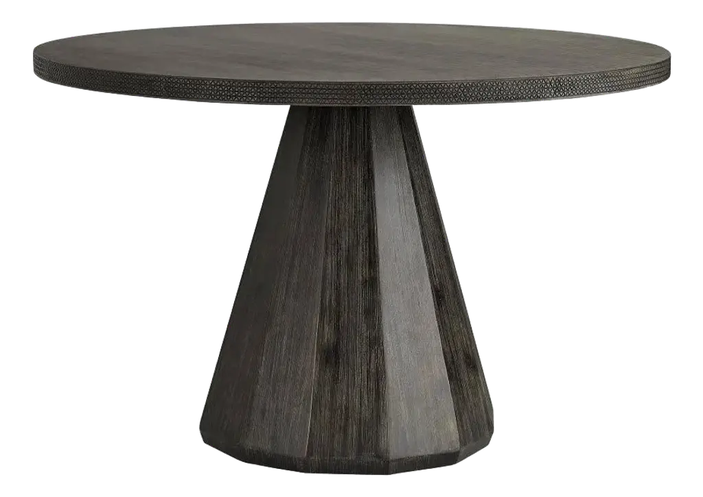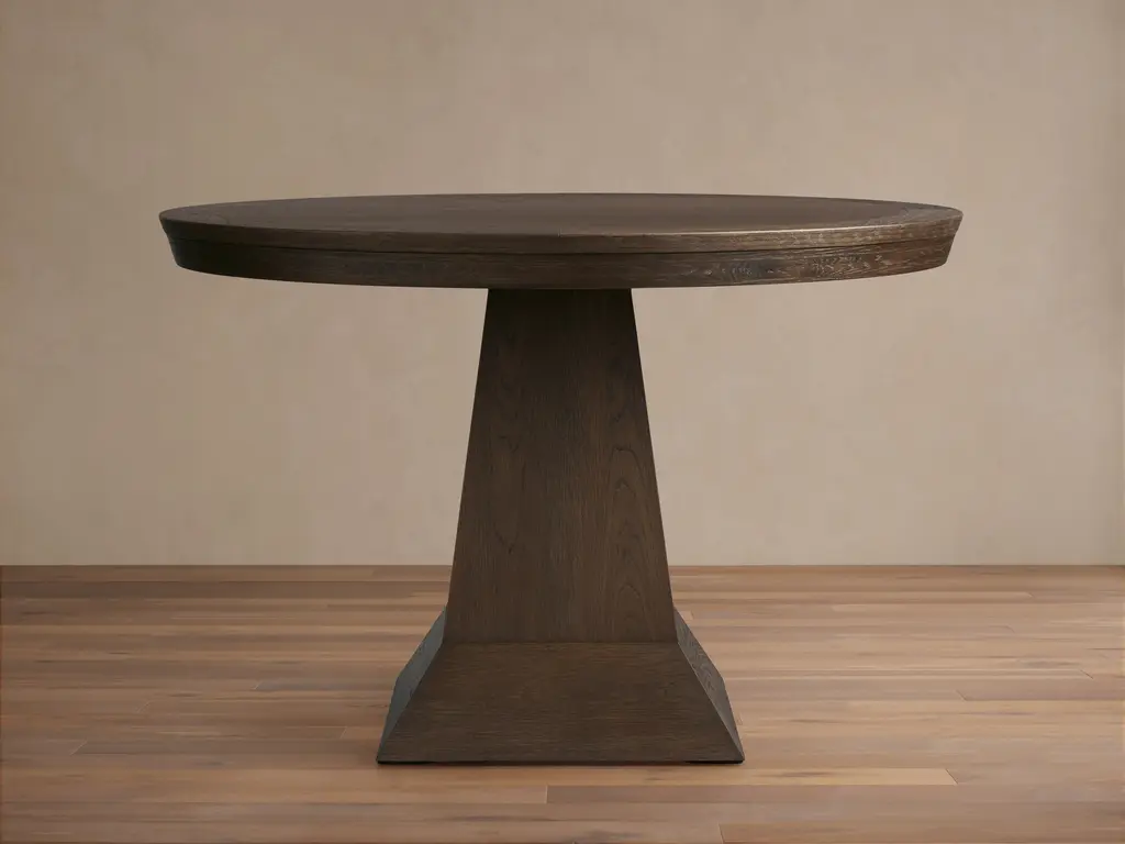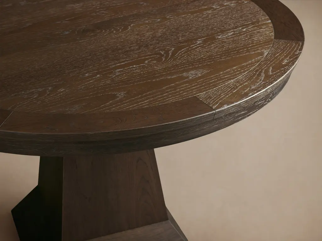 Handcrafted with a transitional pedestal design, our Leighton Dining Collection is finished and distressed by hand, highlighting the natural graining of the wood. Using the included extension leaves, Leighton’s exclusive rack-and-pinion extension gear system allows the table’s surface to expand so more people can comfortably gather around to share food, spirits, and conversation.