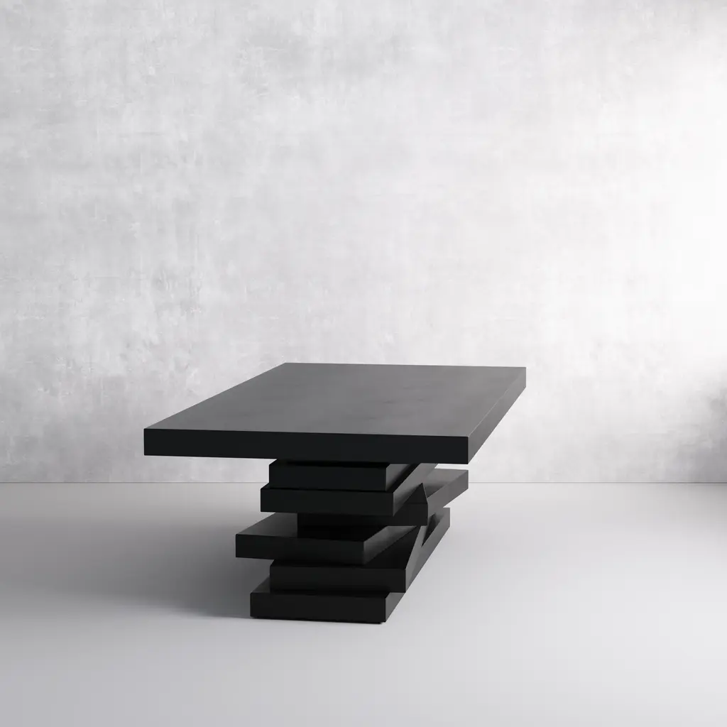 Our Leiria dining table will bring the drama while maintaining a modern appearance. Medium-density fiberboard is covered in a matte finish for an ultra-contemporary look. Embrace unbalanced geometry for an elegant take on eclecticism. This table is ideal for filling a large, luxury dining space. Dimensions: 94.48''W x 47.24''D x 29.92''H Tear Sheet
