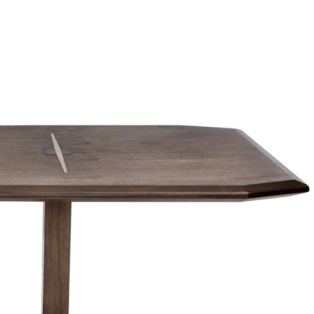 The Lenox Dining Table is distinct and handsome. With solid walnut legs and an end grain and brass inset on the top, this table is a stunning centrepiece to any room. This large dining table was developed to provide a sense of elegance and a residential quality to hospitality spaces. It is ideal for PDR environments as well as co-working and lobby spaces.