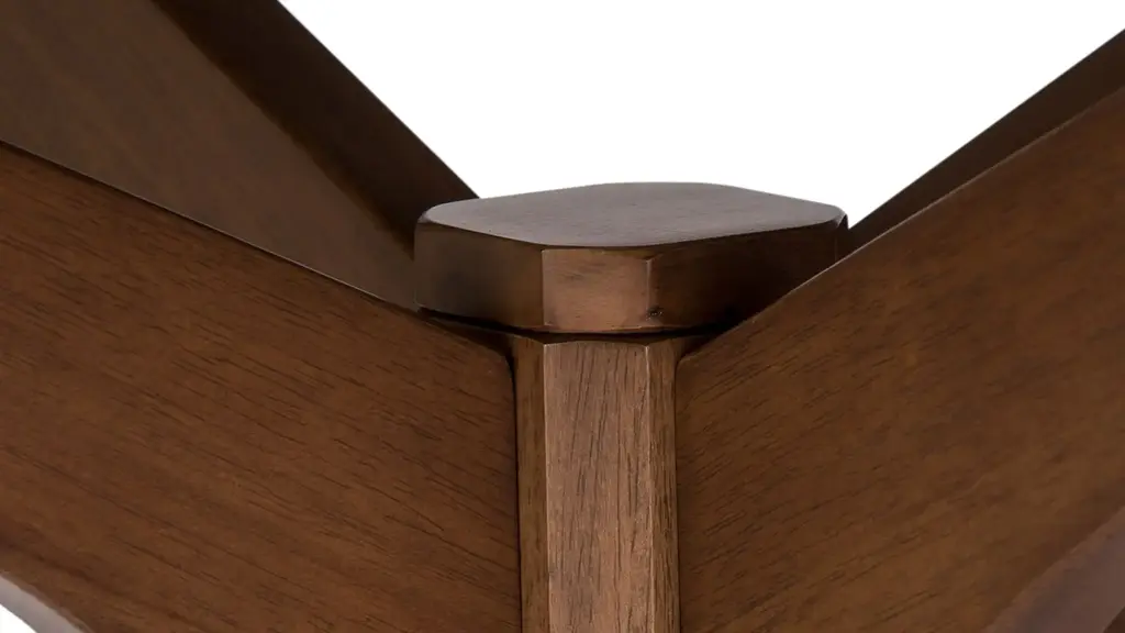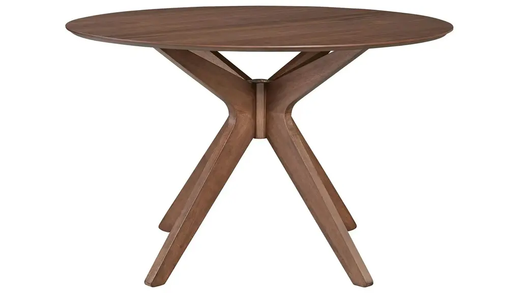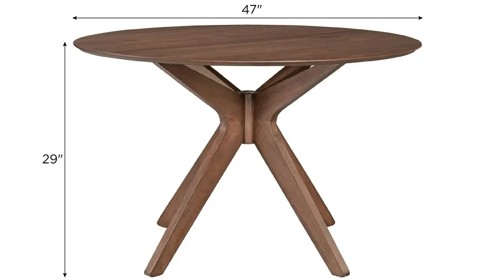 Liberty Dining Table features a satin walnut finish, fixed top, and is anchored by a unique architectural style base. This table is sure to create a simplistic statement in any room.