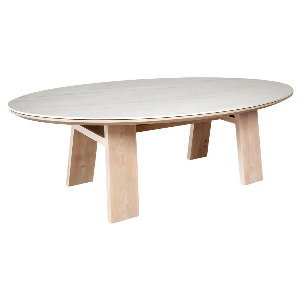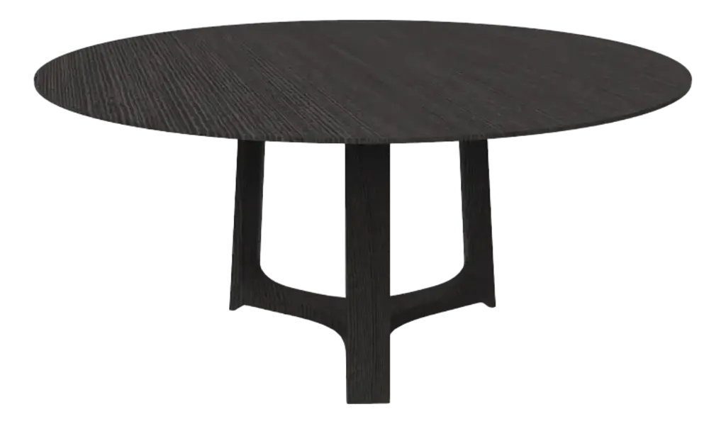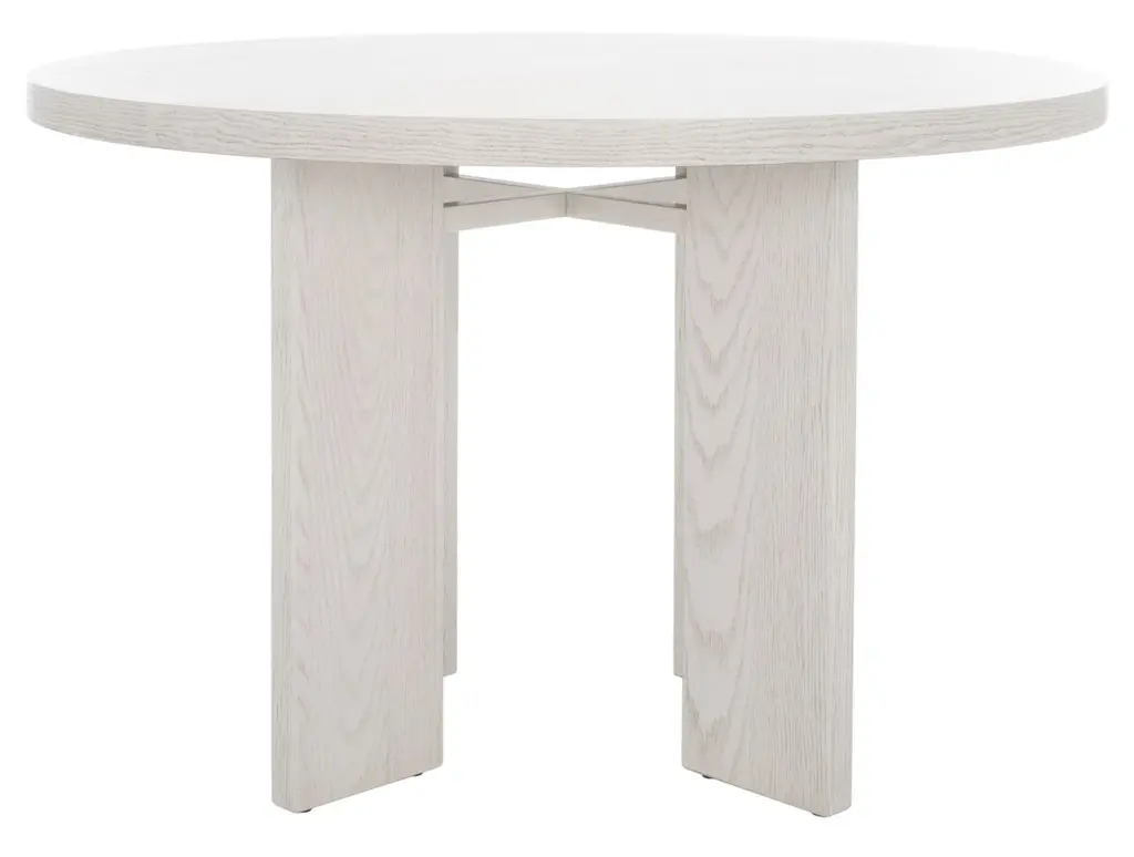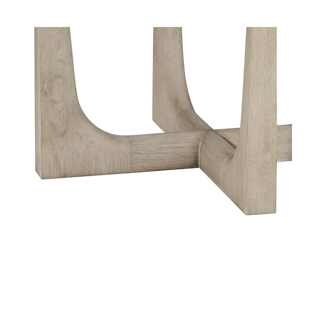 A 60" round quartz top dining table that seats six comfortably. Its X-form base and elegant legs in our light grey oak finish reach upwards to perfectly balance the stone giving the impression of lightness. The beveled edge of the quartz adds comfort to an otherwise harsh edge.Dimensions: 60" W x 60" D x 30" H
