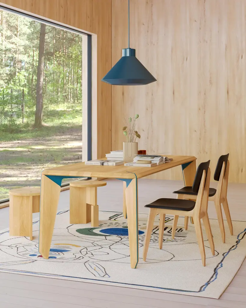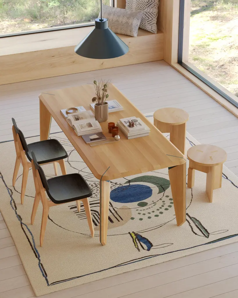 Lika Rectangular 6 Person Dining Table Solid Wood Oak Top, Solid Wood Oak Carrier, Green Metal Detail, draws attention with its modern and aesthetic design. The natural and durable structure of the solid wood oak top, combined with green metal details, gives the table a fresh and original look. This table, as part of the Lika collection, perfectly matches the other products of the collection.
