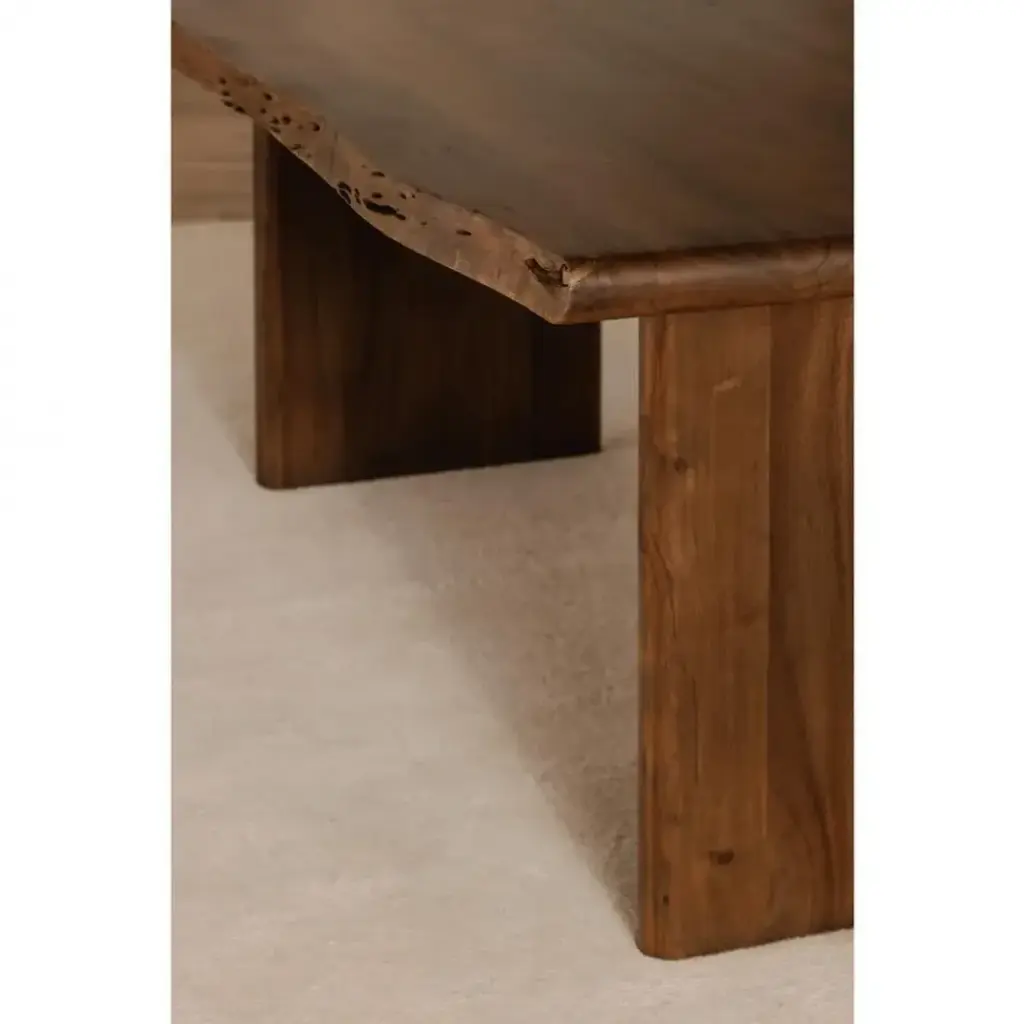 The Lila dining table reimagines its live edge. It introduces a softer appeal with bullnose edging on the shorter ends and base, offering a delicate sophistication. This piece is an invitation to the beauty of live edge with an elegant, feminine touch.