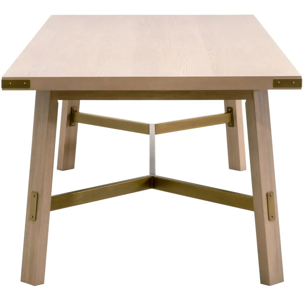 Lilou 90" Rectangular Dining Table, Light Honey Oak/brushed Gold