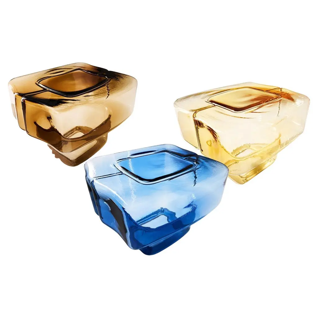 Linde Freya Tangelder Fluid Joinery Glass Side Table by CassinaFOCUSED ON TRANSPARENCYLinde Freya Tangelder’s experimentation with free-form shapes combines glass and colour to create a monolithic low table. Somewhere between artisan craft and industrial production, the Dutch designer’s method focuses on combining colours of varying degrees of intensity, working with overlapping parts to create more brilliant effects and achieving more subtle effects where the transparency is very clear.Made of completely mouth-blown glass, this design low table is envisioned for use by itself or in compositions of several pieces. Its compact shape, flexibility and versatility make it a valuable accessory in any room in the home.By blending fine artisan craftsmanship and industrial manufacturing, Linde Freya Tangelder combines glass and colour in a design low table. Focal points of the project are transparency and the interplay of colours produced by overlapping the parts. The unexpected curved, organic shapes – expressed through deep thicknesses and challenging unevenness – that the sensitivities of the Dutch designer impart to this element make it a distinctive, precious object. The sculpted lines of the top, that continue along the vertical walls, bear the mark of many parts that encountered one another, creating a uniqueness, and narrating a journey. The shape of Fluid Joinery was crafted by design to encourage the combination of several elements. The product is completely mouth blown and shaped by hand, maintaining some unevenness and small irregularities that add value and enhance its uniqueness.The side table is not suitable for seating. Improper use could cause damage to the product.Important information regarding images of products:Please note that some of the images show other colors and variations of the model, these images are only to present interior design proposals. The item that is selling is on the first image. Important information regarding color(s) of products:Actual colors may vary. This is due to the fact that every computer monitor, laptop, tablet and phone screen has a different capability to display colors and that everyone sees these colors differently. We try to edit our photos to show all of our products as life-like as possible, but please understand the actual color may vary slightly from your monitorAbout the designer:Within the works of Destroyers/Builders an interaction between the furniture pieces exists in an overarching inspiration; found in architectural elements, materials or building techniques. Linde Freya Tangelder, founder of the studio, strives for sensory relevance and cultural value in detail and on a larger scale. The works have a sculptural and architectural character, and balance between contemporary and traditional elements.About the manufacturer:In a continuing dialogue between past, present, and future, Cassina has created the I Maestri collection, revisiting furnishing designs by the 20th century’s best-known architects, including Le Corbusier, Pierre Jeanneret, Charlotte Perriand, Charles Rennie Mackintosh, Gerrit Thomas Rietveld, Franco Albini, Frank Lloyd Wright and Marco Zanuso. While the designs and functional concepts have been precisely preserved, the models have been manufactured using evolved technology. This is also the company that has manufactured iconic pieces of contemporary design from the 1950s to the present day, ideated by some of the most important international designers. Today Cassina continues to look to the future of design with audacious, passionate curiosity and an open, holistic approach. It affirms its exclusive ability to furnish a home’s living and dining spaces completely and iconically with The Cassina Perspective: a concept, a philosophy, an informed, futuristic thought. A detailed, expansive horizon of combinations; when placed together, the products have an innovative soul and the modern icons create authentic, welcoming, personal atmospheres involved in a conversation dominated by a code of design excellence, formal sensitive awareness, solidity and cultural authority.