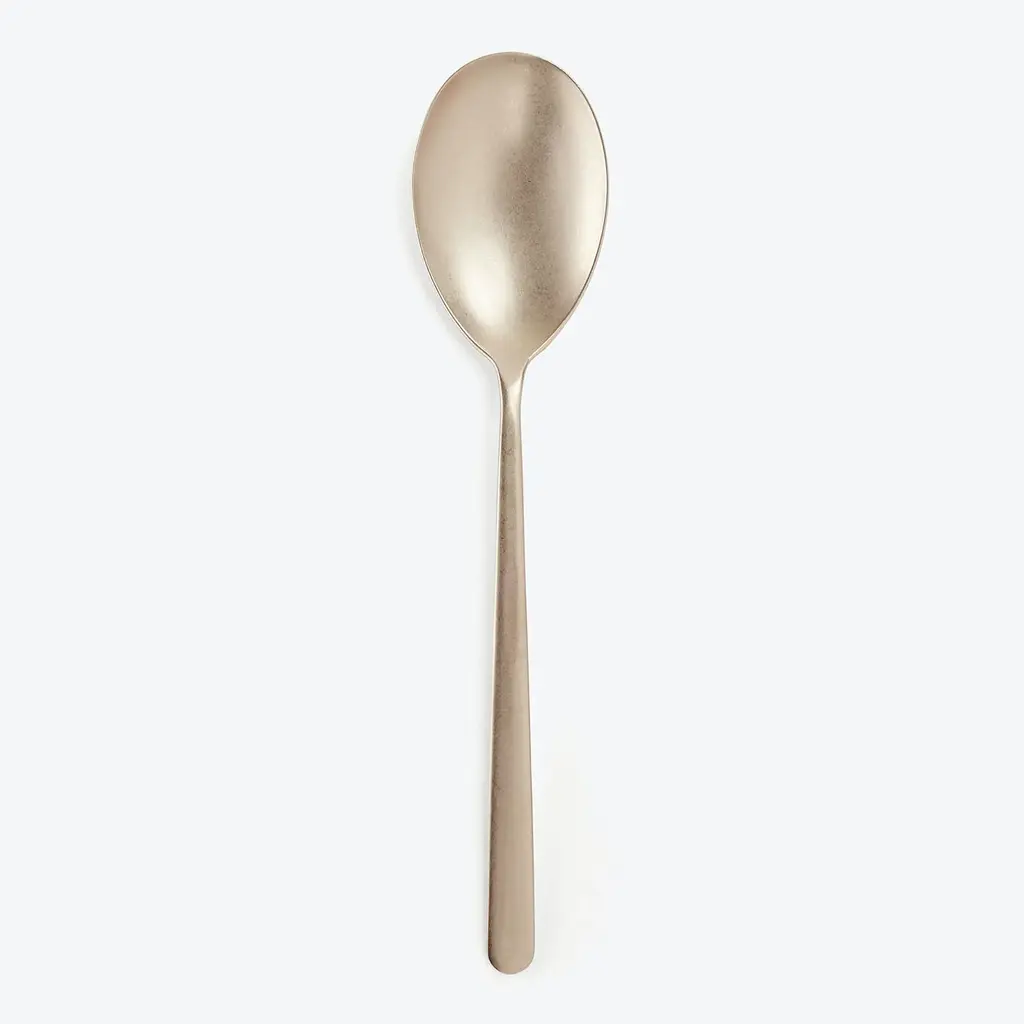 Made in Italy, Linea Serveware is coated with a beautiful brushed finish. Featuring crisp lines and a minimalist aesthetic, this collection brings a touch of Italian poetry to the table. Created in 1947, Mepra is a family-owned and operated company with a worldwide presence in flatware, cookware, and stainless-steel products. Today, Mepra flatware and kitchenware appear on the tables of the most prestigious hotels, award-winning restaurants, and artisanal-centered homes. Bring the magic of three generations worth of Italian traditions, designs, and lifestyles into your kitchen and dining room today. Stainless Steel plating features a special vintage process that gives it a rustic, warm, and elegant appearance while still being durable and inoxidizable coating. Winners of the 2020 Good Design Award, the Bronzo, Rainbow, Oro Nero, Champagne, Oro, and Ice Oro Collections are perfect for the most refined and stylish homes with their pure lines and harmoniously light forms. Champagne Ice, Ice Bronze, Ice, and Ice Oro Nero are coated with a PVD Titanium Coating that is tested and guaranteed for more than 3000 washes in a commercial dishwasher. The special Titanium Plating was originally developed by NASA, resulting in a durable and inoxidizable coating like non-other.