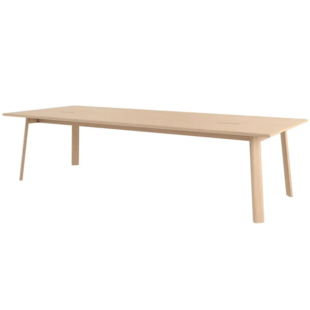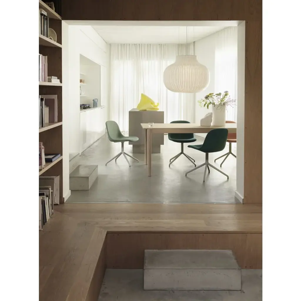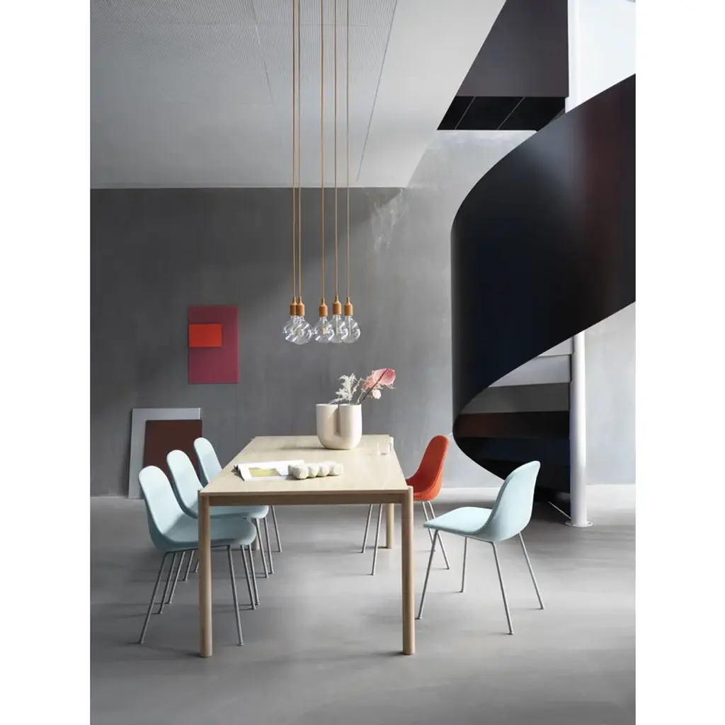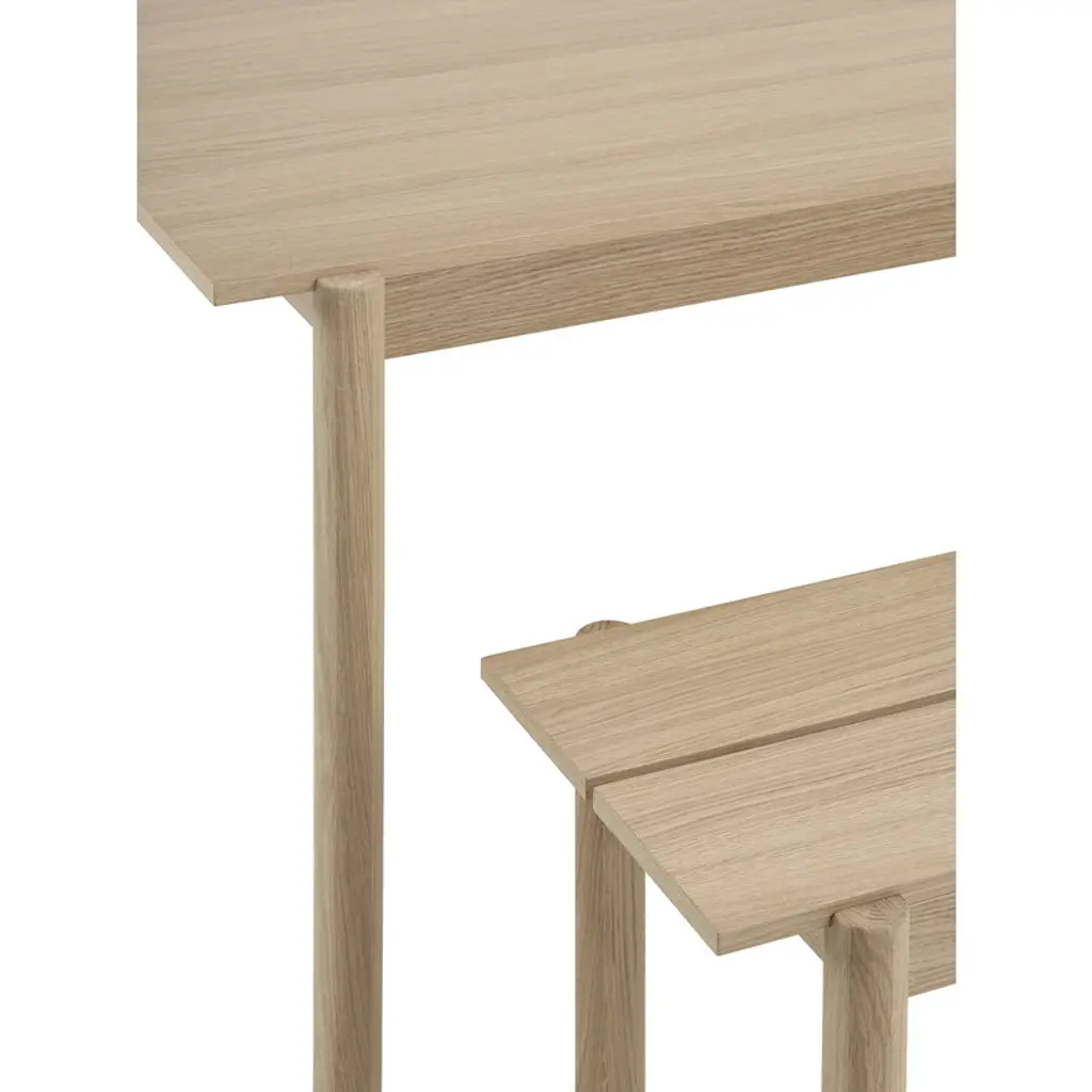 The Linear Wood table by Muuto is characterized by a modern yet timeless expression inspired by the meeting of lines and shapes. The designer, Danish Thomas Bentzen, wanted to unite the warmth of natural wood with a simple, understated shape in order to create a dining set with straight lines that are softened by subtle details like the rounded legs that go all they way to the top. The Linear Wood table is perfect for the kitchen or dining room, but also a great fit for an office or a meeting room. The dining set can be completed with one or two matching benches.