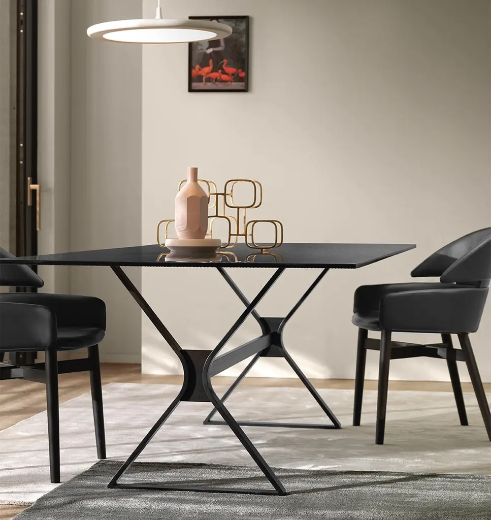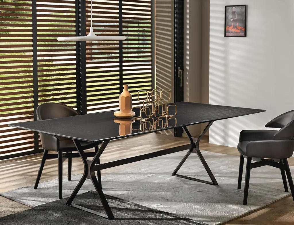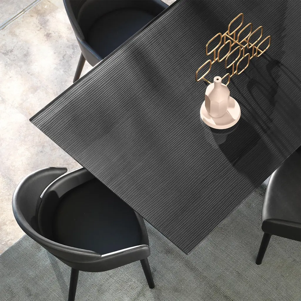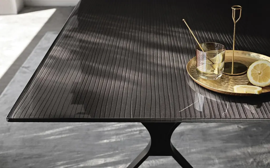 Lines Top Dining Table With Metal Tinted Top