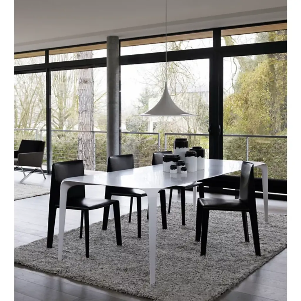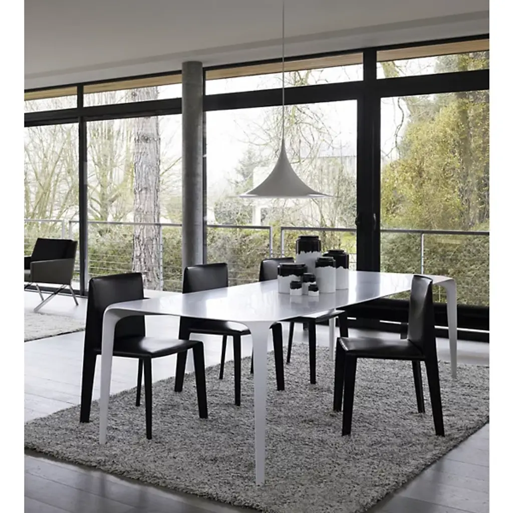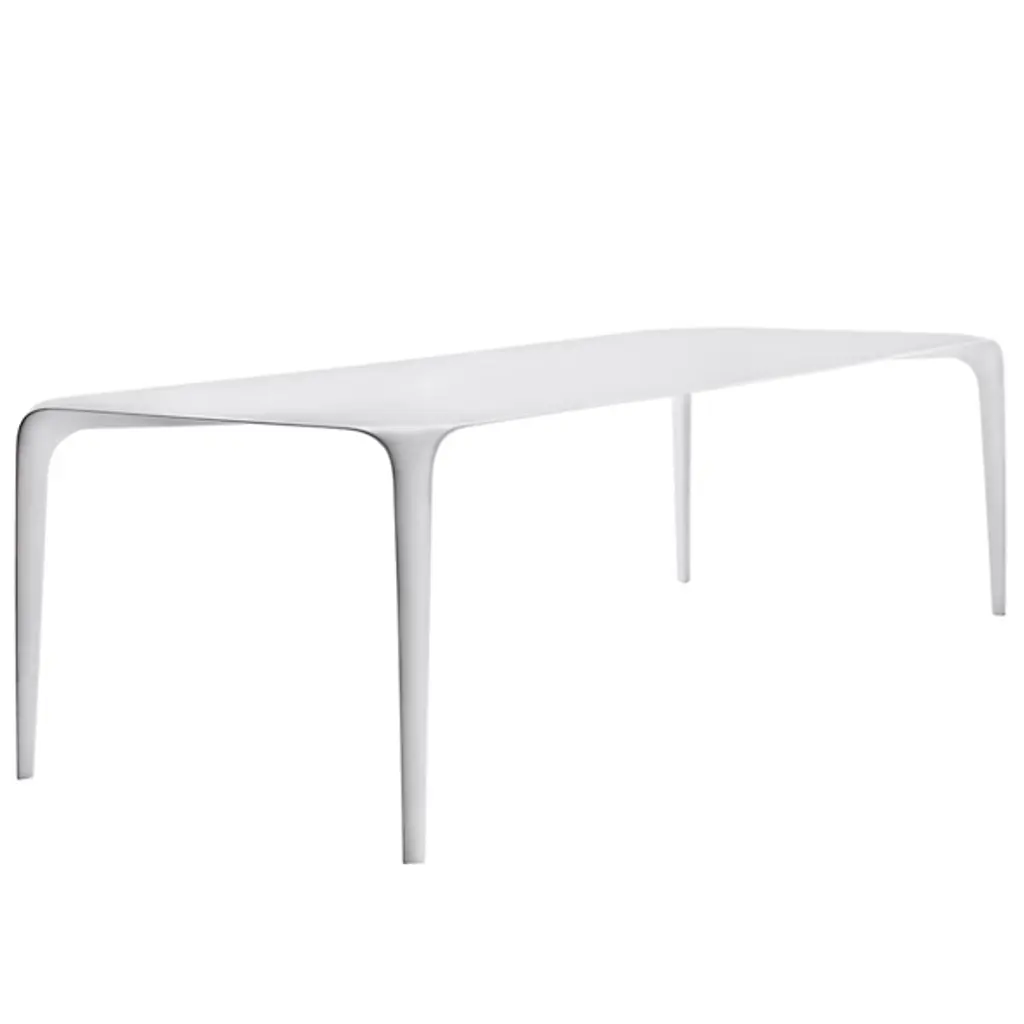 The Link Rectangular Indoor/Outdoor Dining Table from B&B Italia focuses on décor, architecture, and natural surroundings as an ultra-refined design crafted with technical prowess. Designer Jakob Wagner conceives simple to perceive yet complex pieces. The goal is to create products with inherent natural beauty that stir powerful emotion. Its low-profile top and trim legs put user comfort first. The table invites touch through its smooth Cristalplant® surface. Constructed in one piece, this robust table is suitable for both indoor and outdoor use.