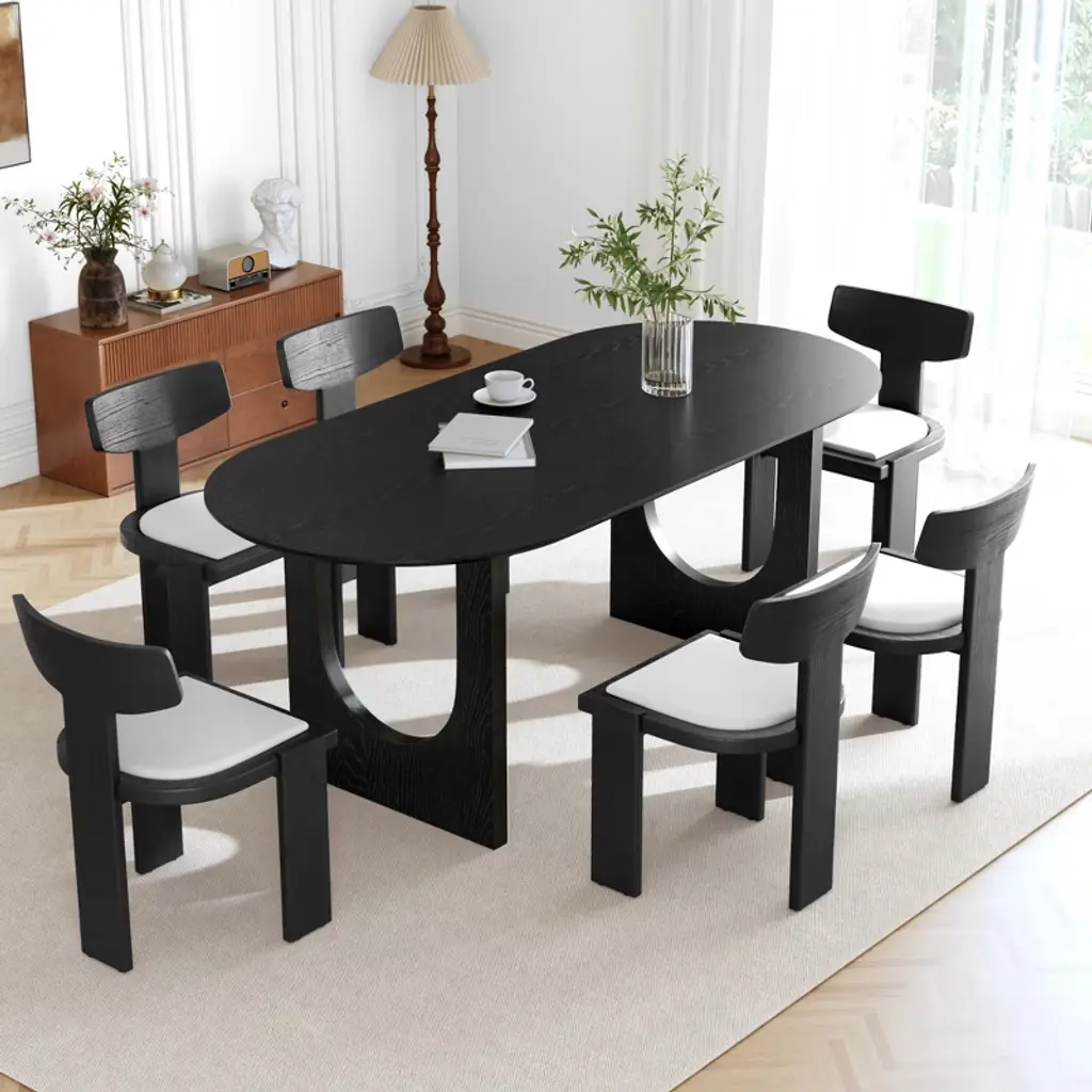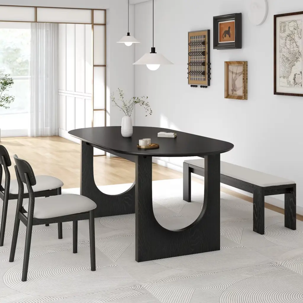 Lirago 30"h Oval Wood Double Pedestal Dining Table Seats 6, 67*33.5 Black