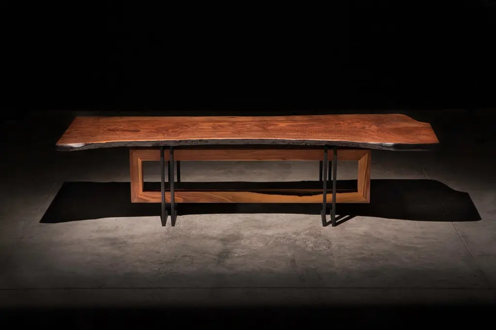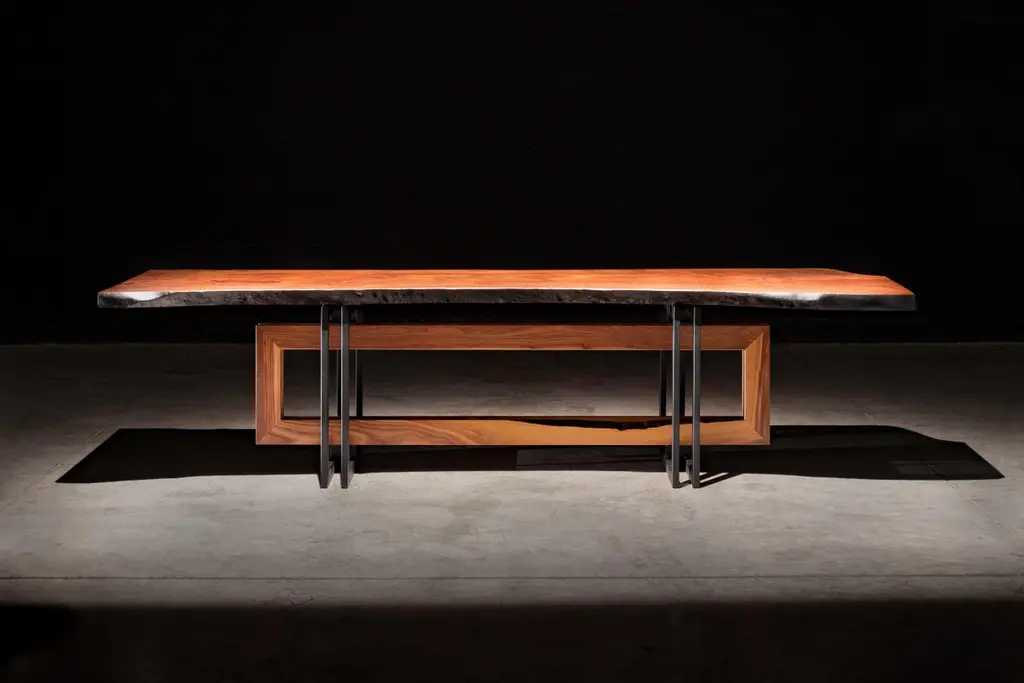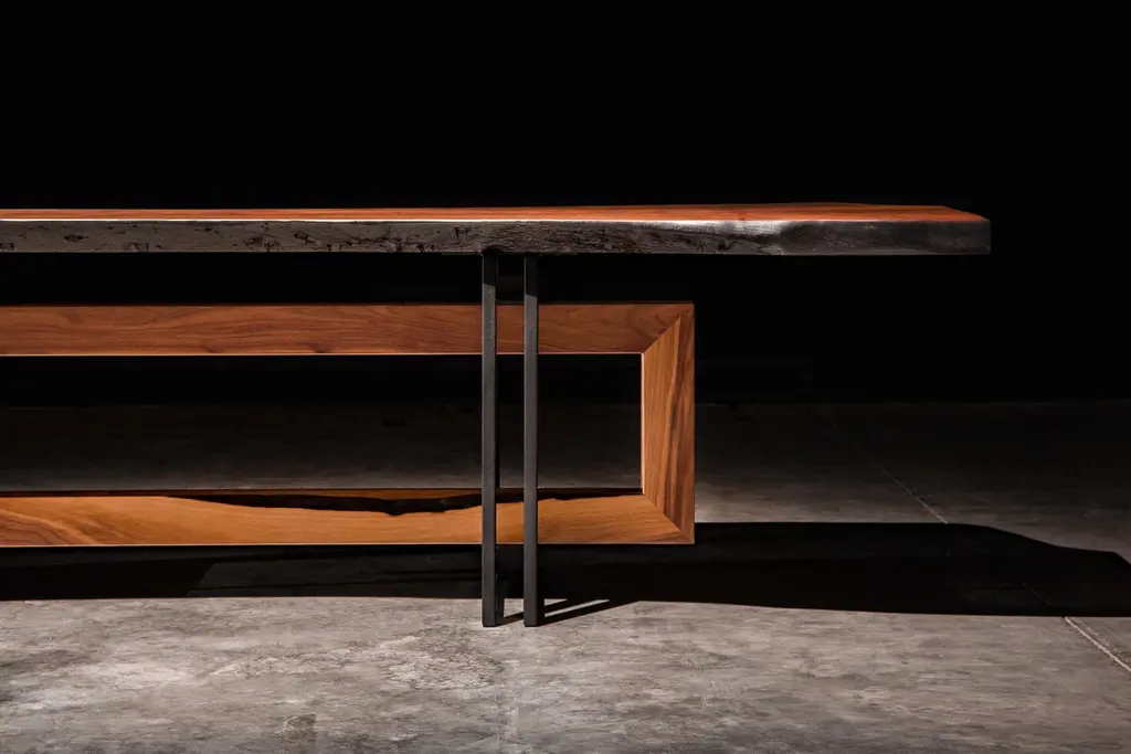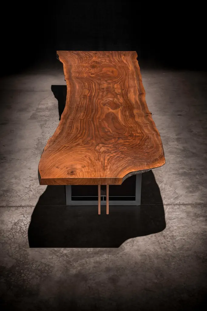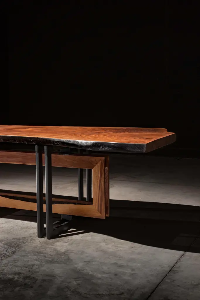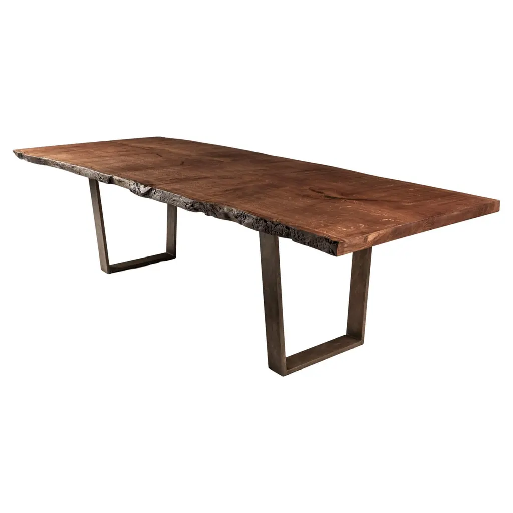 Live Edge Walnut Slab On Black Steel And Solid Walnut Base "Alter Dining Table"
