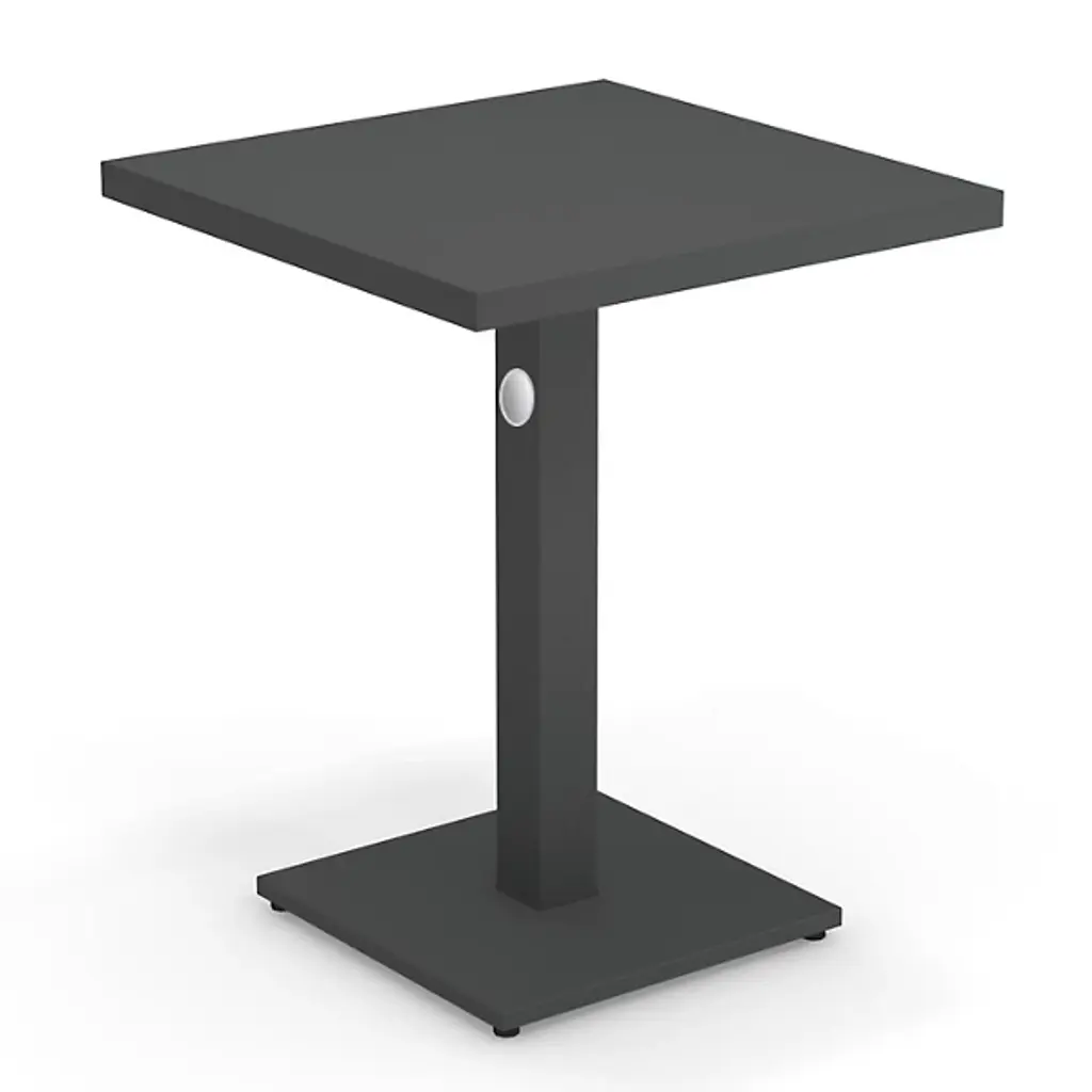 The Lock Outdoor Dining Table from Emu is a clean, reliable piece, standing up with an elegant pedestal silhouette. Designer emu creates practical and comfortable pieces using traditional metalwork. This table features a top-to-bottom steel construction covered in a durable powder-coated finish. The steel base sits at a low profile for comfort and stability. Perched over a slender column, the neat geometric tabletop is an elegant look on its own or when arranged in a series with another table.