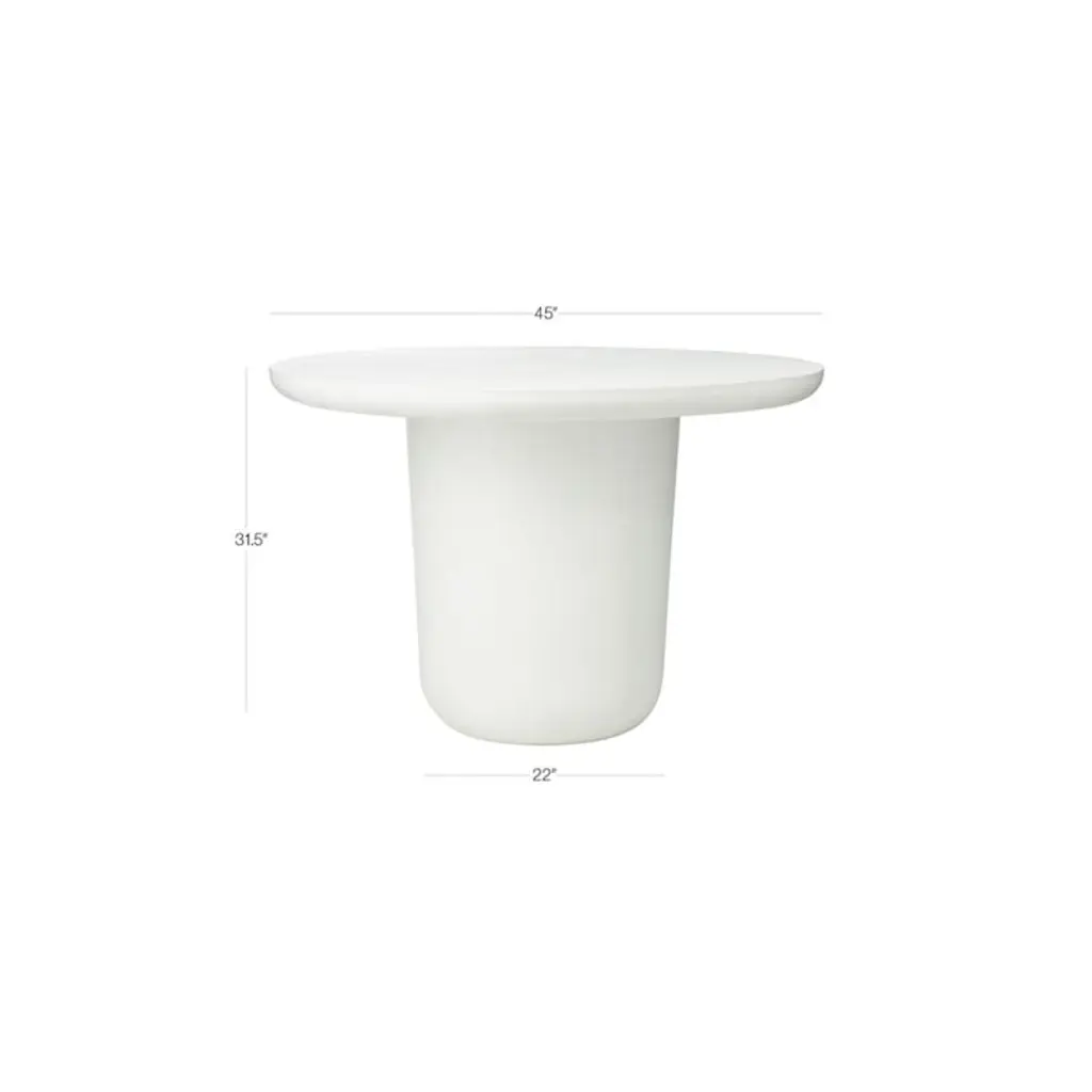 Concrete mixture cements the plump base and clean, rounded top of Mermelada Estudio's dining table. Inviting in ivory and modern in form, table seats four. Stunning in a large entry. CB2 exclusive.
