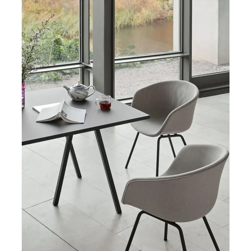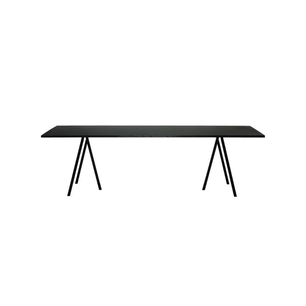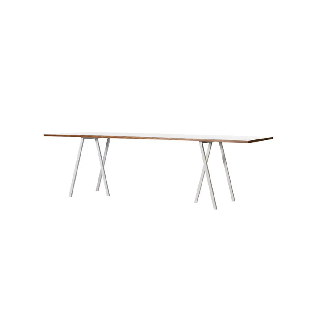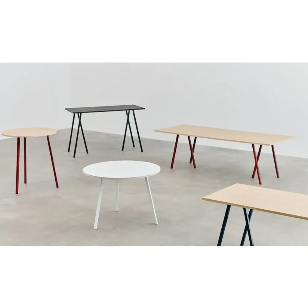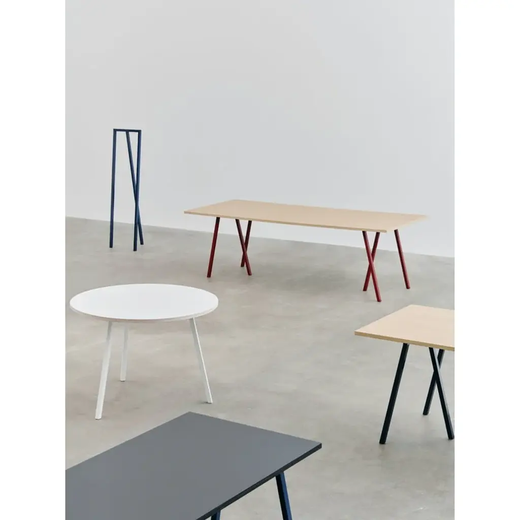 HAY's Loop Stand frame provides sturdy support and streamlined, industrial esthetics for a tabletop of your choice. Create a custom dining table or desk by combining these metal trestles with a tabletop in your favorite color and material. The HAY Loop Stand frame is 28.35 in (72 cm) high and comes in a set of two. The Loop Stand collection is based on the modern, three-legged version of a traditional trestle. Leif Jørgensen designed the Loop Stand collection originally for the Storm lifestyle and fashion store in Copenhagen, and its simple and elegant design has found its place in numerous homes, offices and public spaces around the world.