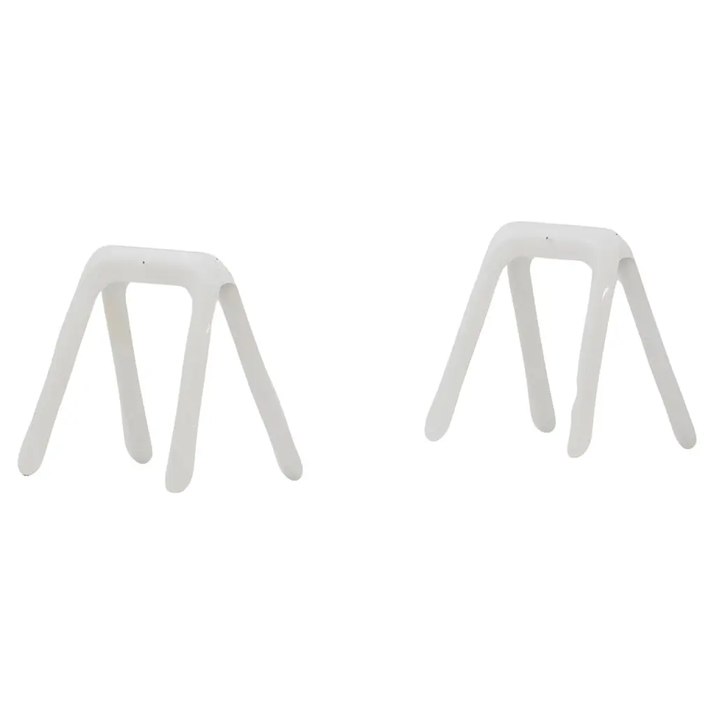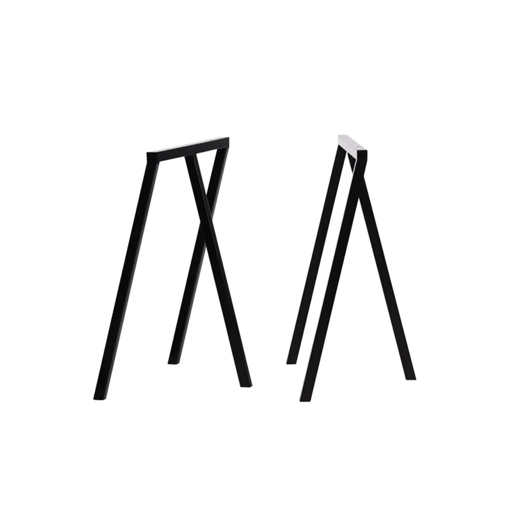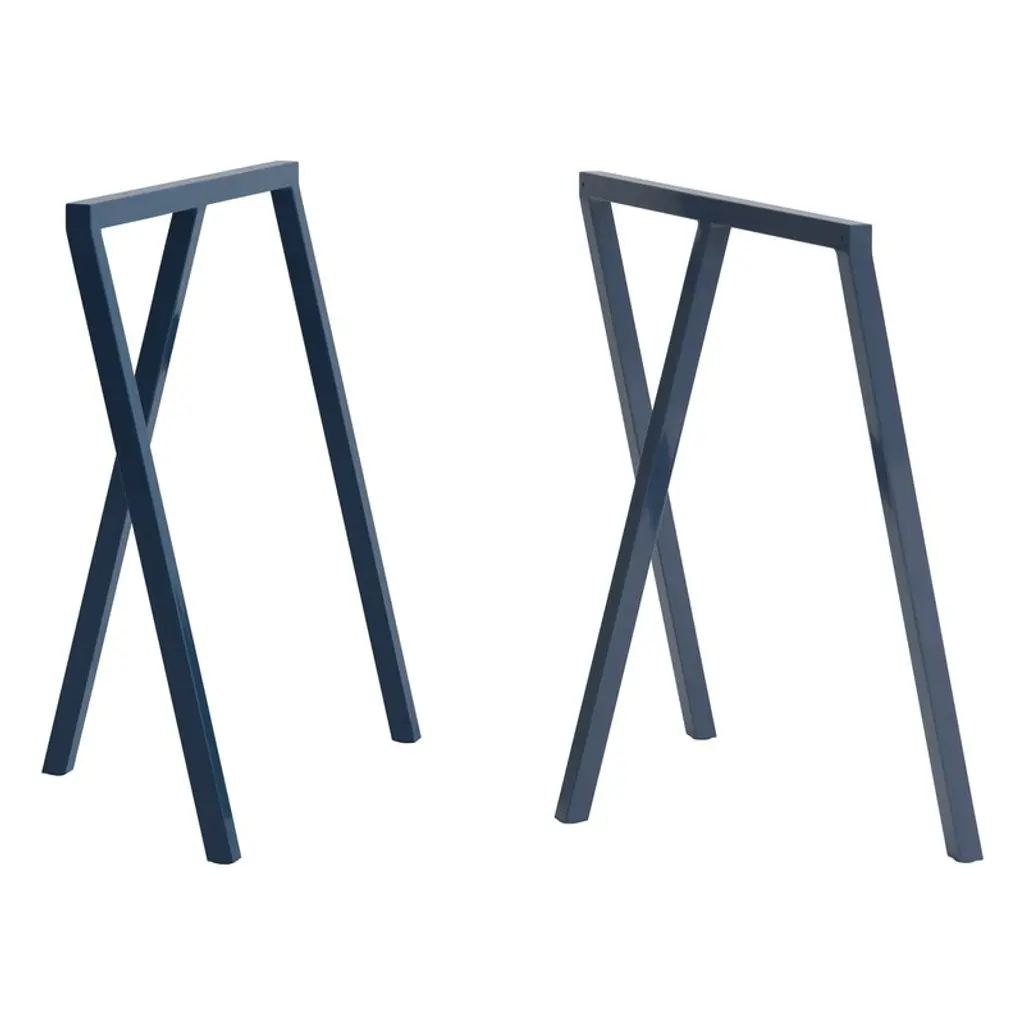 HAY's Loop Stand frame provides sturdy support and streamlined, industrial esthetics for a tabletop of your choice. Create a custom dining table or desk by combining these metal trestles with a tabletop in your favorite color and material. The HAY Loop Stand frame is 28.35 in (72 cm) high and comes in a set of two. The Loop Stand collection is based on the modern, three-legged version of a traditional trestle. Leif Jørgensen designed the Loop Stand collection originally for the Storm lifestyle and fashion store in Copenhagen, and its simple and elegant design has found its place in numerous homes, offices and public spaces around the world.