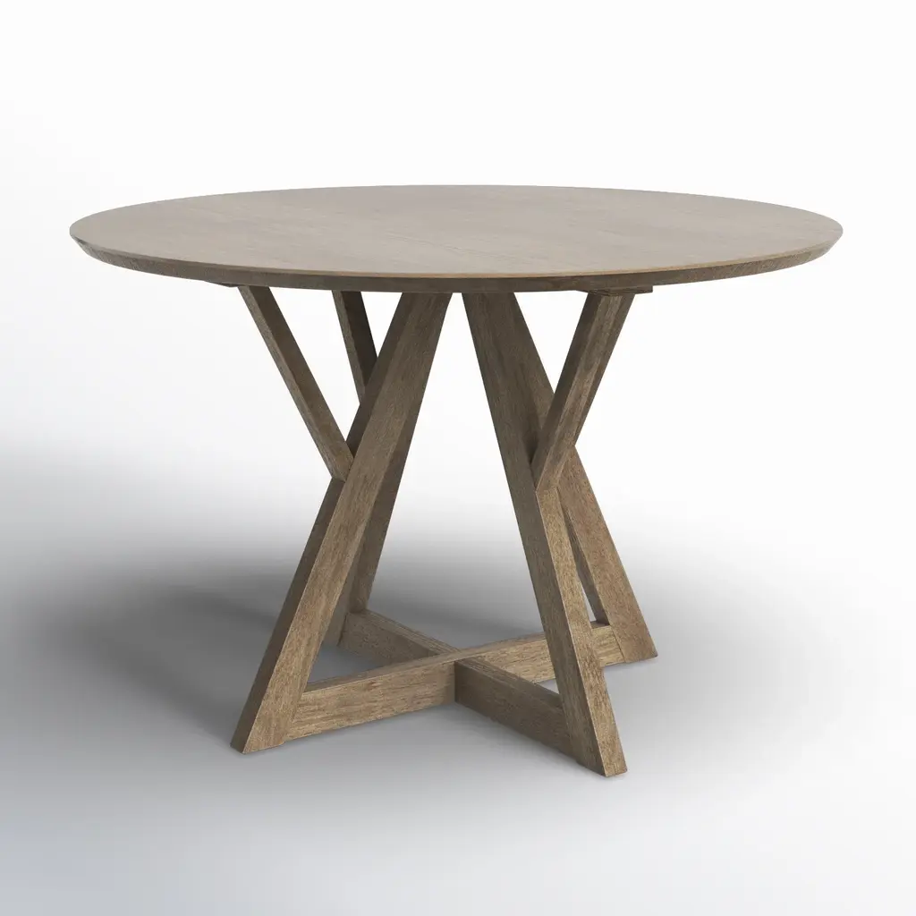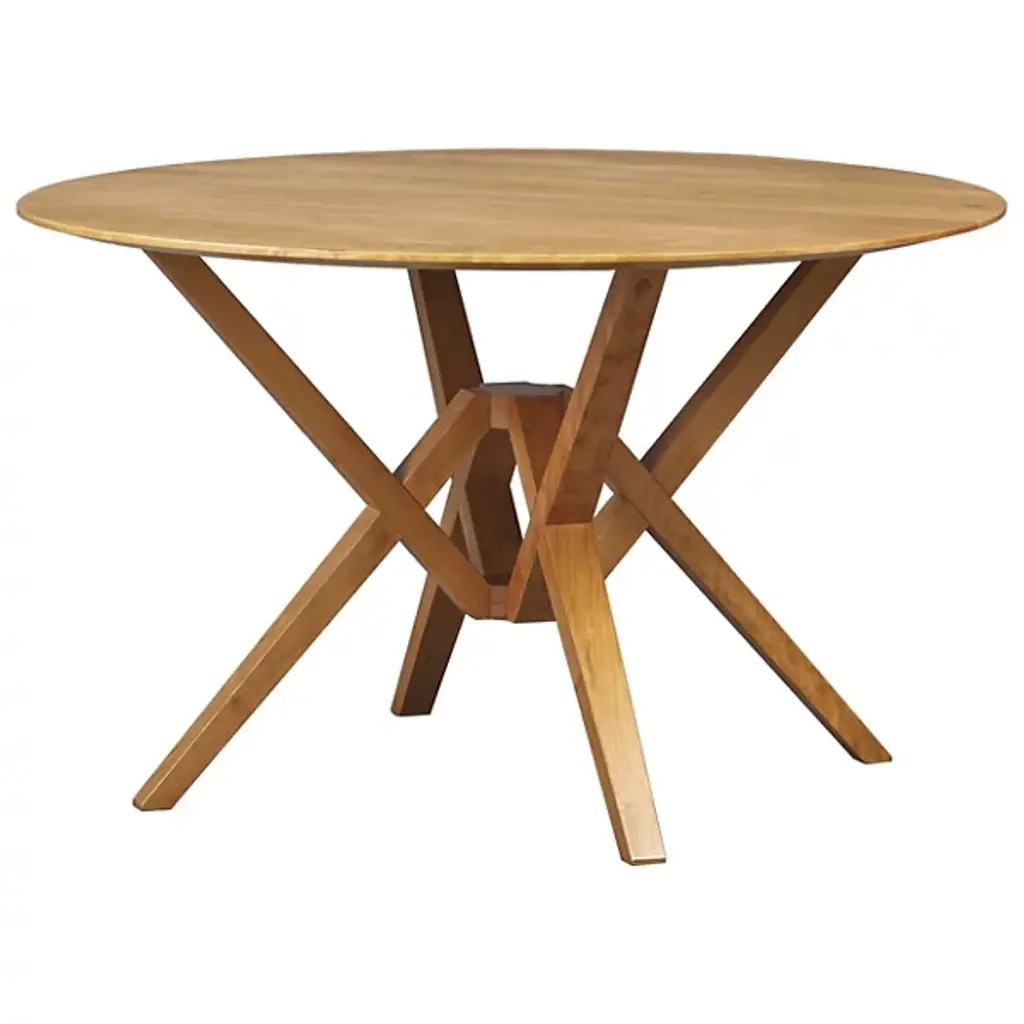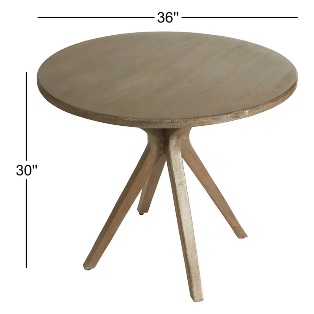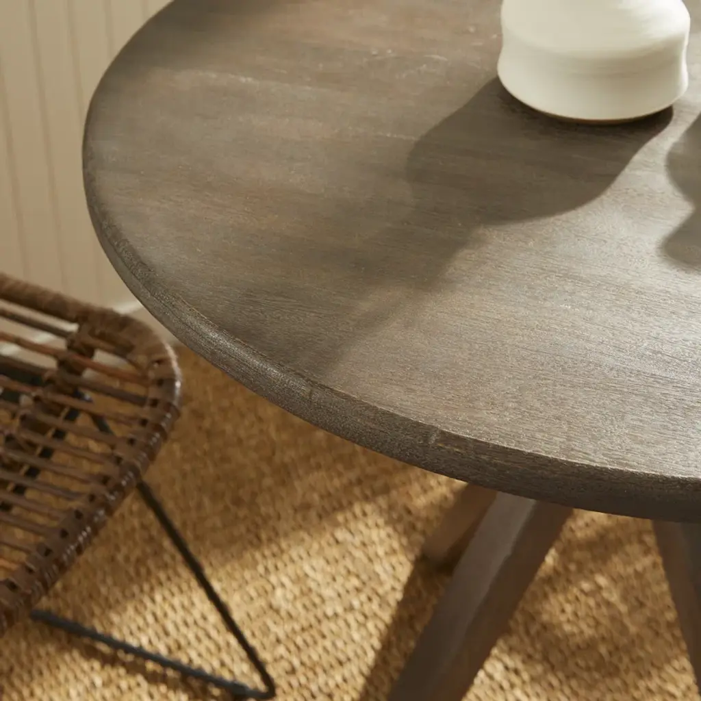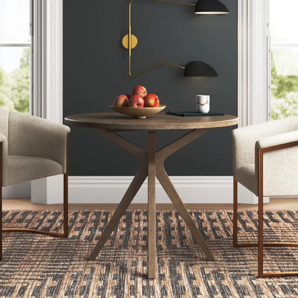 The round dining table puts an airy spin on the traditional pedestal design. It's crafted from solid mango wood in a natural finish that highlights the wood's grain, and it features splayed legs that meet in the middle to form an hourglass shape. We love that this 4-person table is sized just right for smaller dining rooms or eat-in kitchens. Pro-tip: Style it with a bold centerpiece or vase of fresh florals for the perfect curated moment.