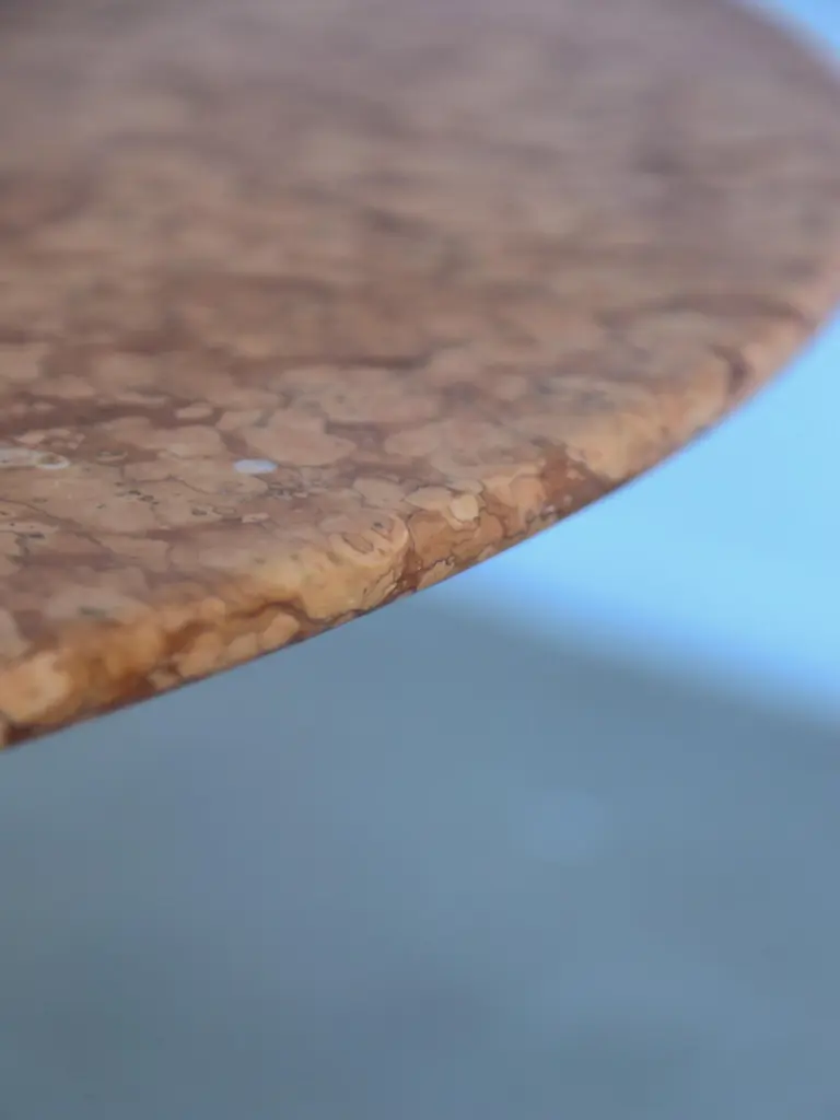 Ettore Sottsass for Poltronova "Loto" round dining table in marble and black lacquered metal. Ettore Sottsass (1917–2007) was an Italian architect and designer, best known for founding the Memphis Group in the 1980s, which had a profound impact on postmodern design. Sottsass had a long and diverse career, and his work spanned various disciplines, including architecture, industrial design, and ceramics.In the early 1980s, Sottsass founded the Memphis Group, a design collective that brought together young designers and artists. The group's designs were characterized by bold colors, geometric shapes, and a rejection of the minimalism of the preceding decades.The Memphis Group had a significant influence on the design world and is often associated with the postmodern movement.Sottsass had a successful career as an architect. He worked on a variety of projects, including residential buildings, office spaces, and public spaces. One of his notable architectural works is the Beverly Hills home for David and Ginny Sydorick, known as the "David and Ginny Sydorick House" (1984).Sottsass was known for his rejection of strict design rules and his embrace of individual expression and creativity. His designs often incorporated bright colors, asymmetry, and a sense of playfulness.Ettore Sottsass's influence on design is significant, and his work continues to be celebrated and studied. His designs are often featured in design museums, and his impact on postmodern design remains a subject of interest for designers and enthusiasts alike.Designer: Ettore SottsassManufacturer: PoltronovaPlace of Origin: ItalyDate of Manufacture: 1960sIn style: Mid Century ModernMaterials & Techniques: marble & metalCondition: Good condition, wear consistent with the age useDimensions:Heigh: 71 cmDiameter: 130 cmInternational shipping is available on all items. Please contact us for a shipping quote.