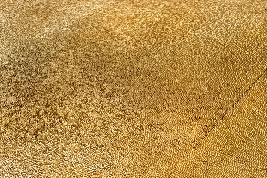 Louise Dining Table In Medium Hammered Brass Over Teak By Paul Mathieu