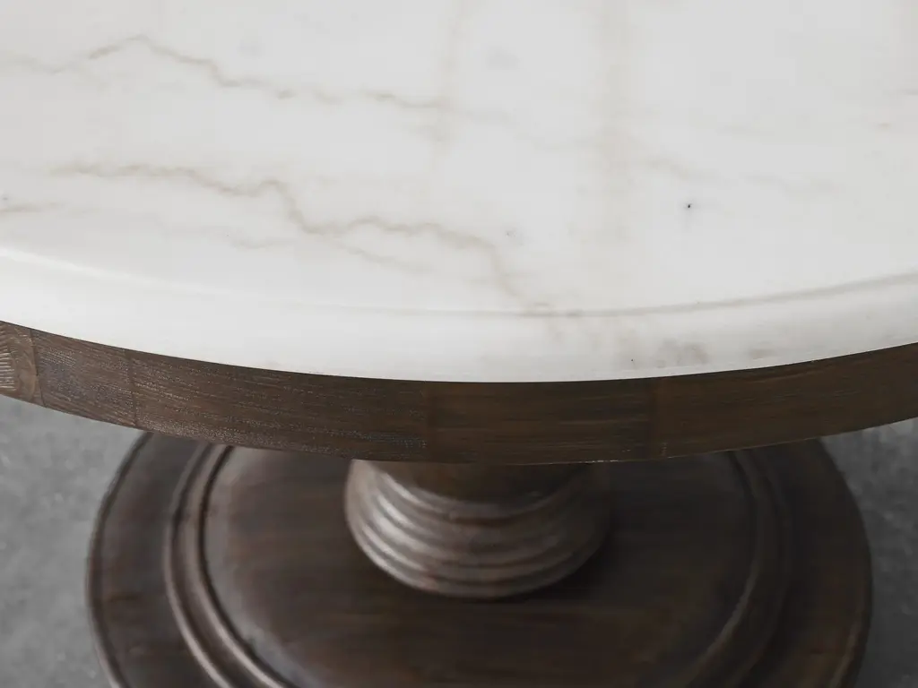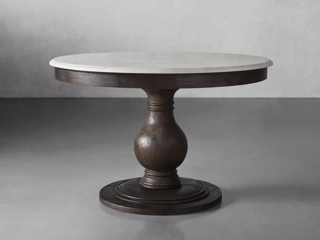 Inspired by the granite shorelines of Barcelona, our classically styled Luca Dining Collection complements hand-carved stone with the beauty of natural wood. Solid Finnish pine wood is artfully hand-finished, while stunning slabs of bluestone and white marble are cut and carefully shaped. Frames are durably assembled by our craftsmen, who sculpt each elegant curve, adding subtle accents to each surface. Then, finishes are carefully layered and distressed to highlight the materials’ naturally varying color and texture, imparting each piece with a rugged beauty that will form a perfect focal point in your dining space.