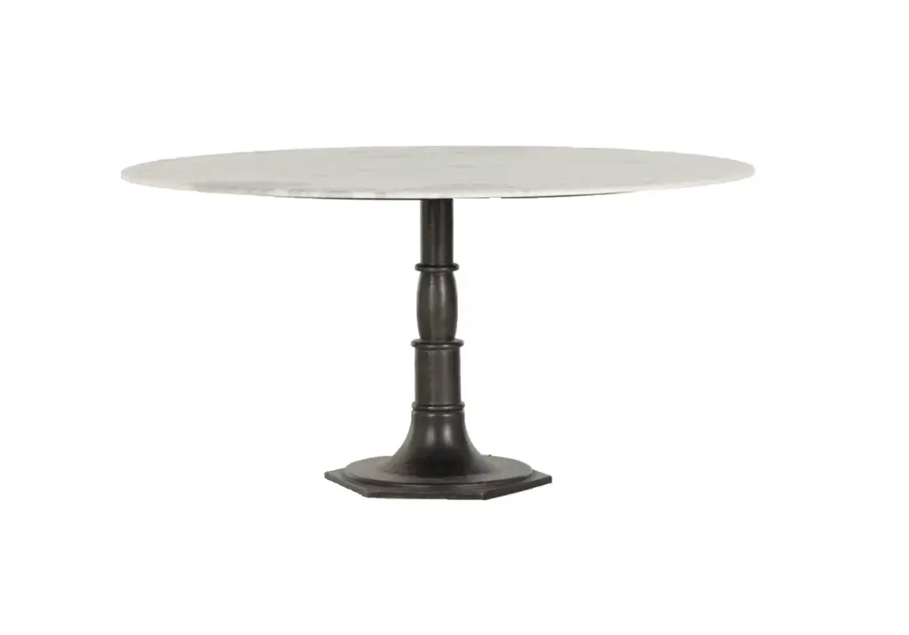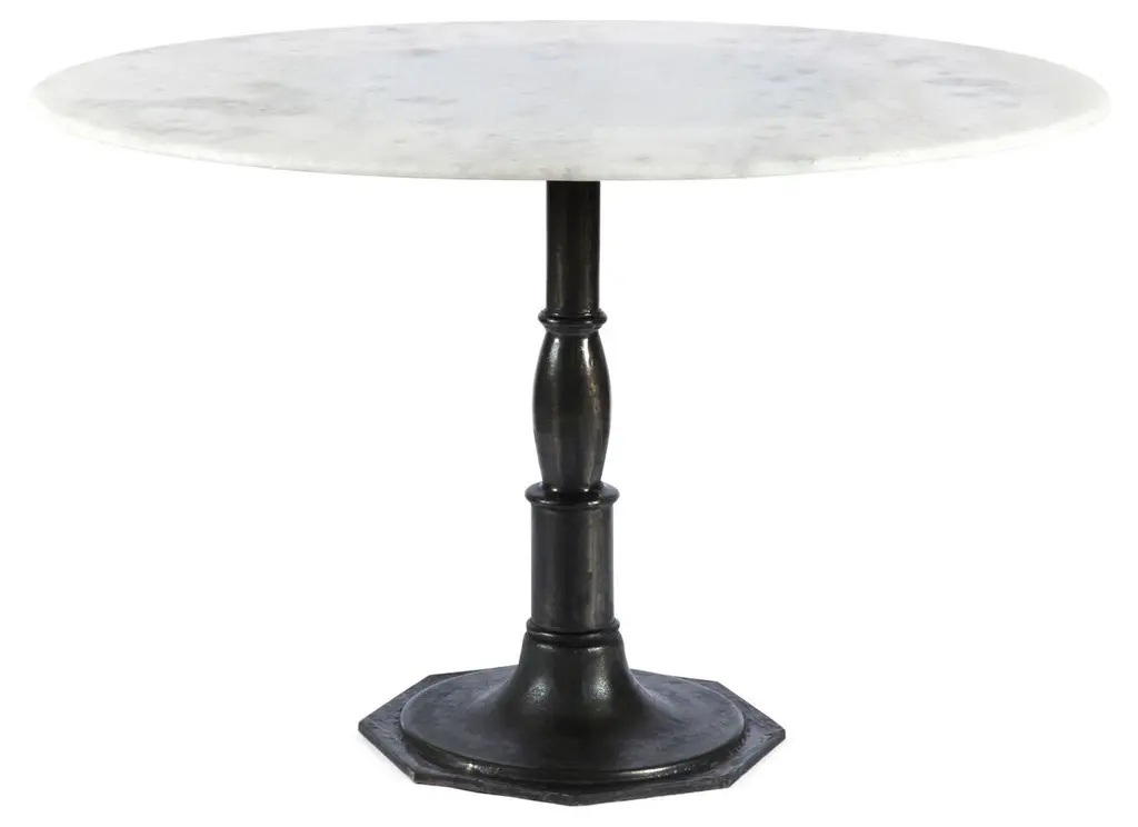 The Lucy Round Dining Table from Four Hands is a sophisticated, distinctive centerpiece inspired by French industrial style. With a bold 8-sided cast iron pedestal and a glossy white marble top, it will be the highlight of any chic dining space. Enjoy daily meals on this luxurious, timeless table with enhanced with a classic bull-nosed edge. Highlights
