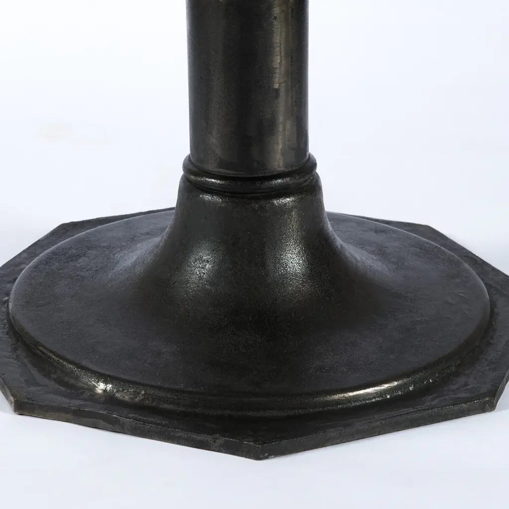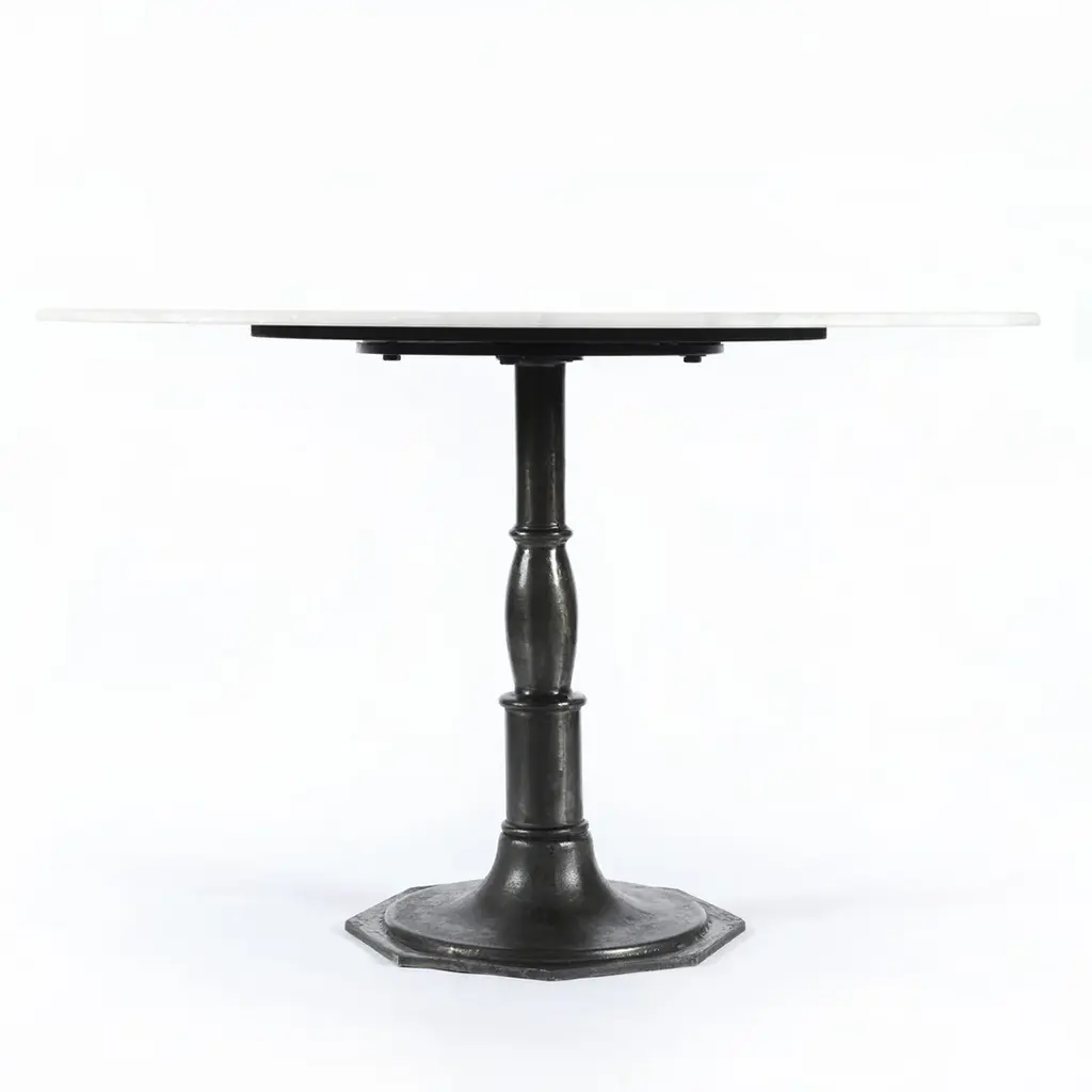 French industrial meets dining table. Beautifully detailed, 8-sided cast iron pedestal supports a dramatic white marble top with a bull-nosed edge. In Stock Early March 2026 In Stock Late January 2026 Cast iron pedestal base Marble top This image is for illustrative purposes only. The colors shown are accurate within the constraints of lighting, photography, and the color accuracy of your screen.