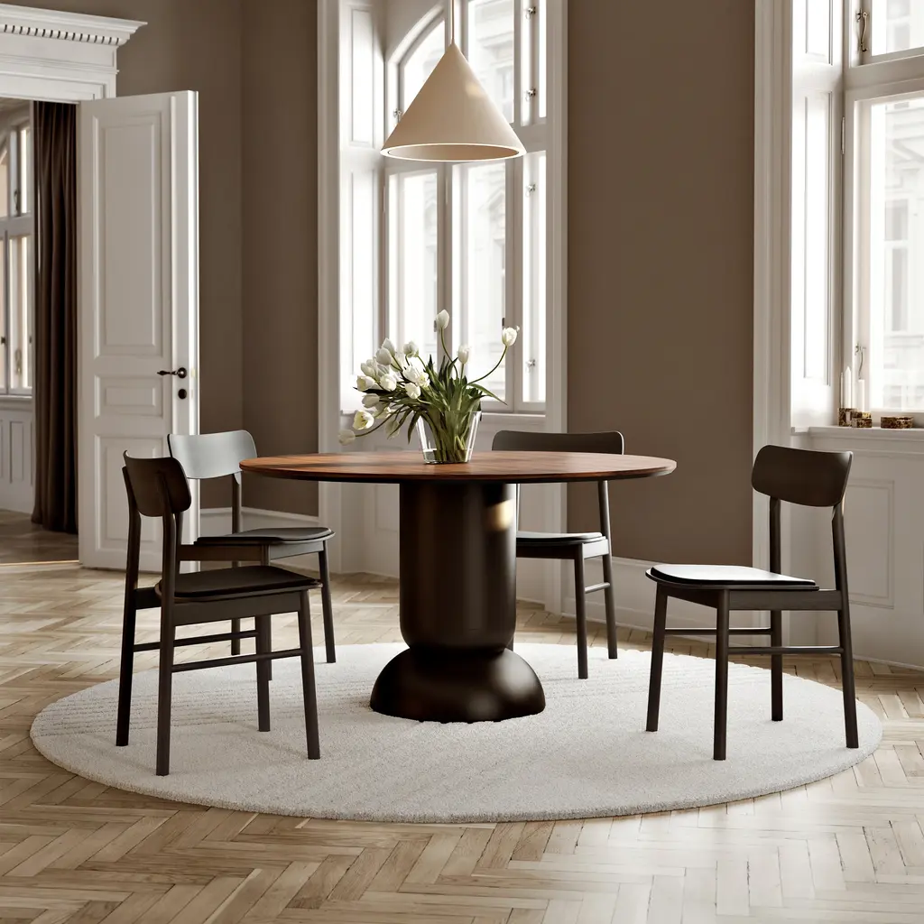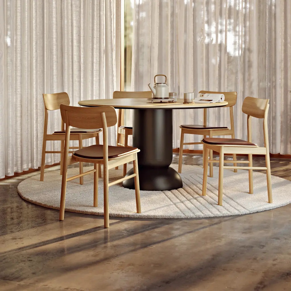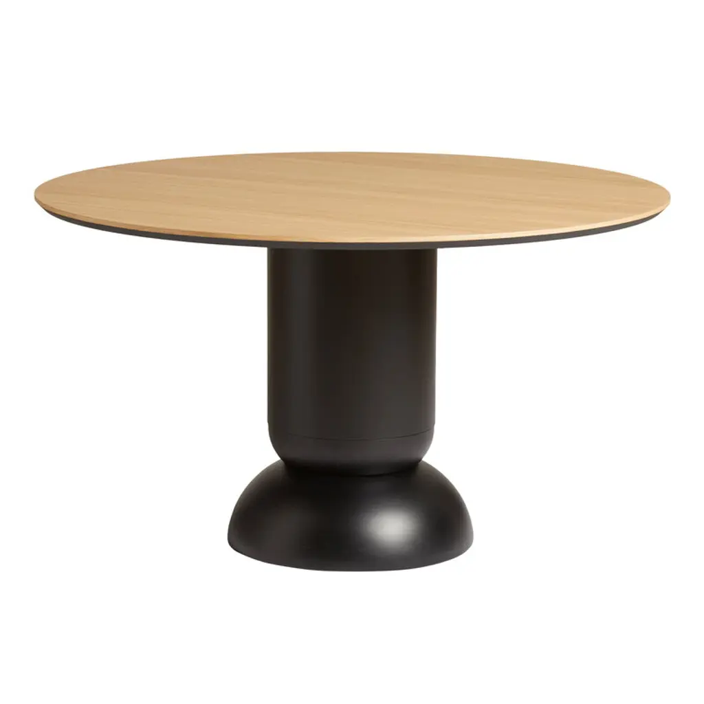 Bring balance and beauty to your dining space with the Ludo Dining Table from WOUD. A pillar dining table with a classic round top, convex and concave geometries, and a unique pedestal base, its timeless design ensures both sophisticated style and ample legroom for all your guests. Highlights