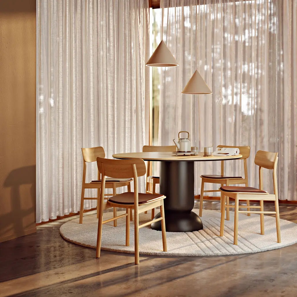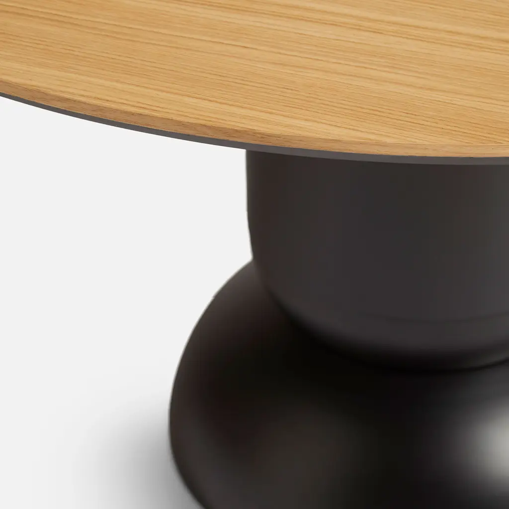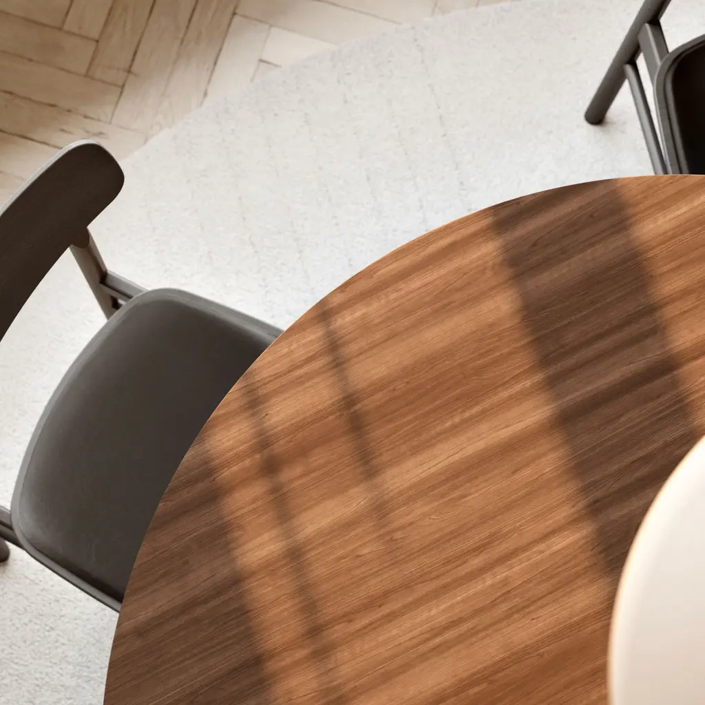 The Ludo dining table is a striking example of design purity and balanced form. It is inspired by the fundamental shapes of geometry, where the table’s rounded top and sculpted base showcase a fluid convergence of opposite forces. The table’s structure is intelligently designed to provide generous legroom, offering a spacious setting for guests. With its smooth wooden surface and sturdy central base, Ludo is engineered for comfort and adaptability. It’s a gathering place that naturally accommodates additional company, a testament to thoughtful design that enhances communal experiences. Ludo’s presence in any dining space is both a nod to artistry and an embrace of functional elegance, inviting shared moments and fostering a welcoming atmosphere for memorable occasions.