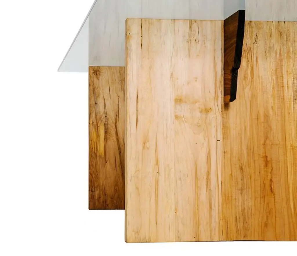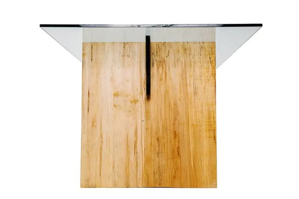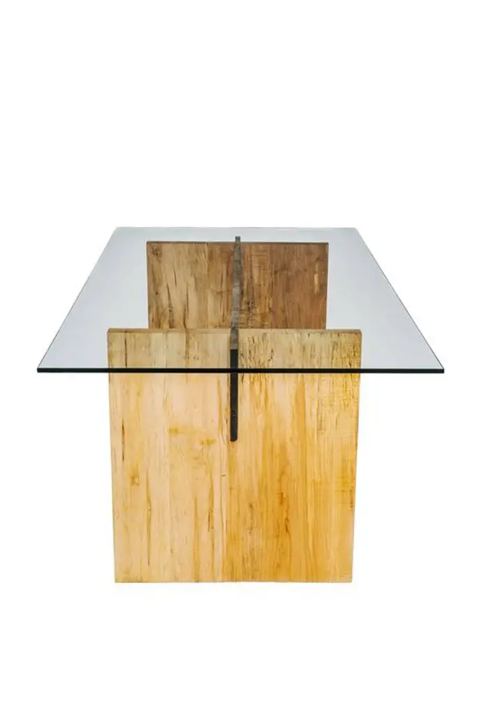 Luxe Walnut And Maple Slab Base, Glass Top Dining Table