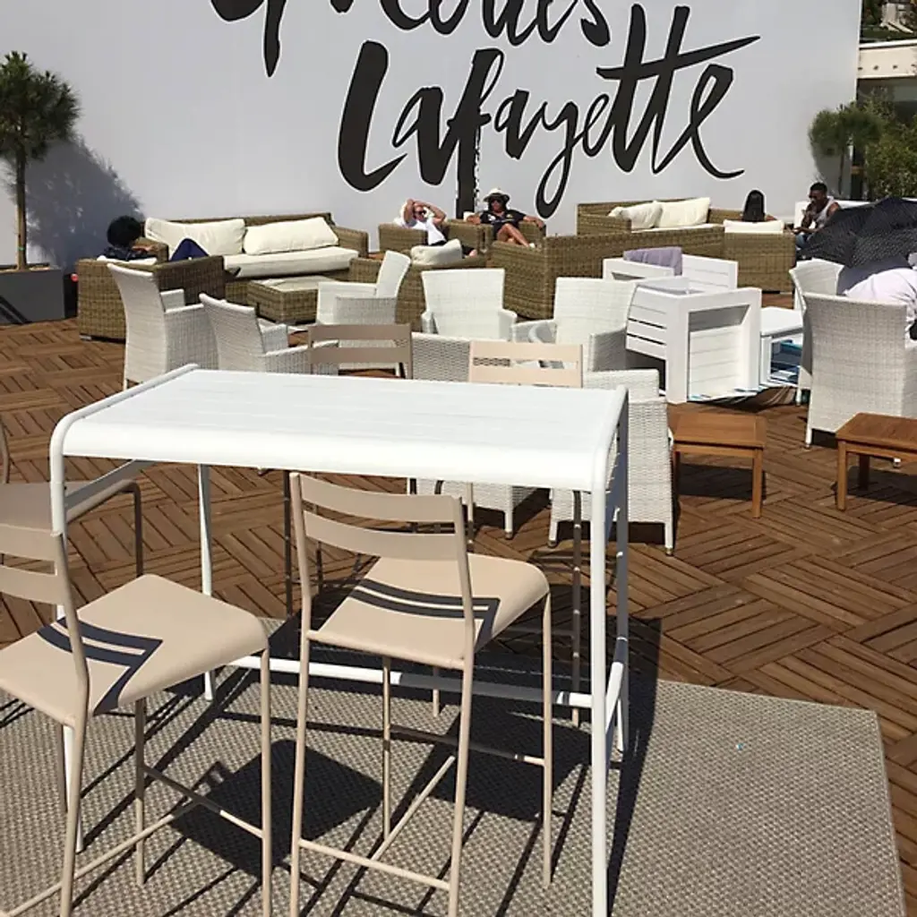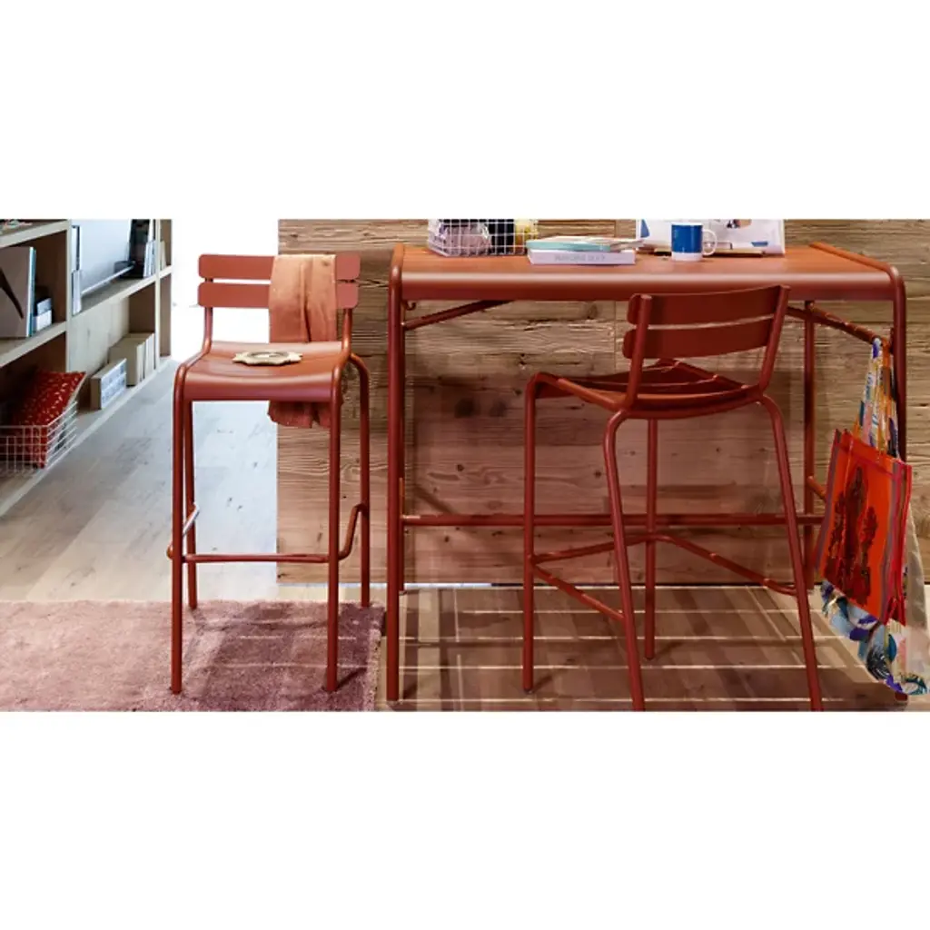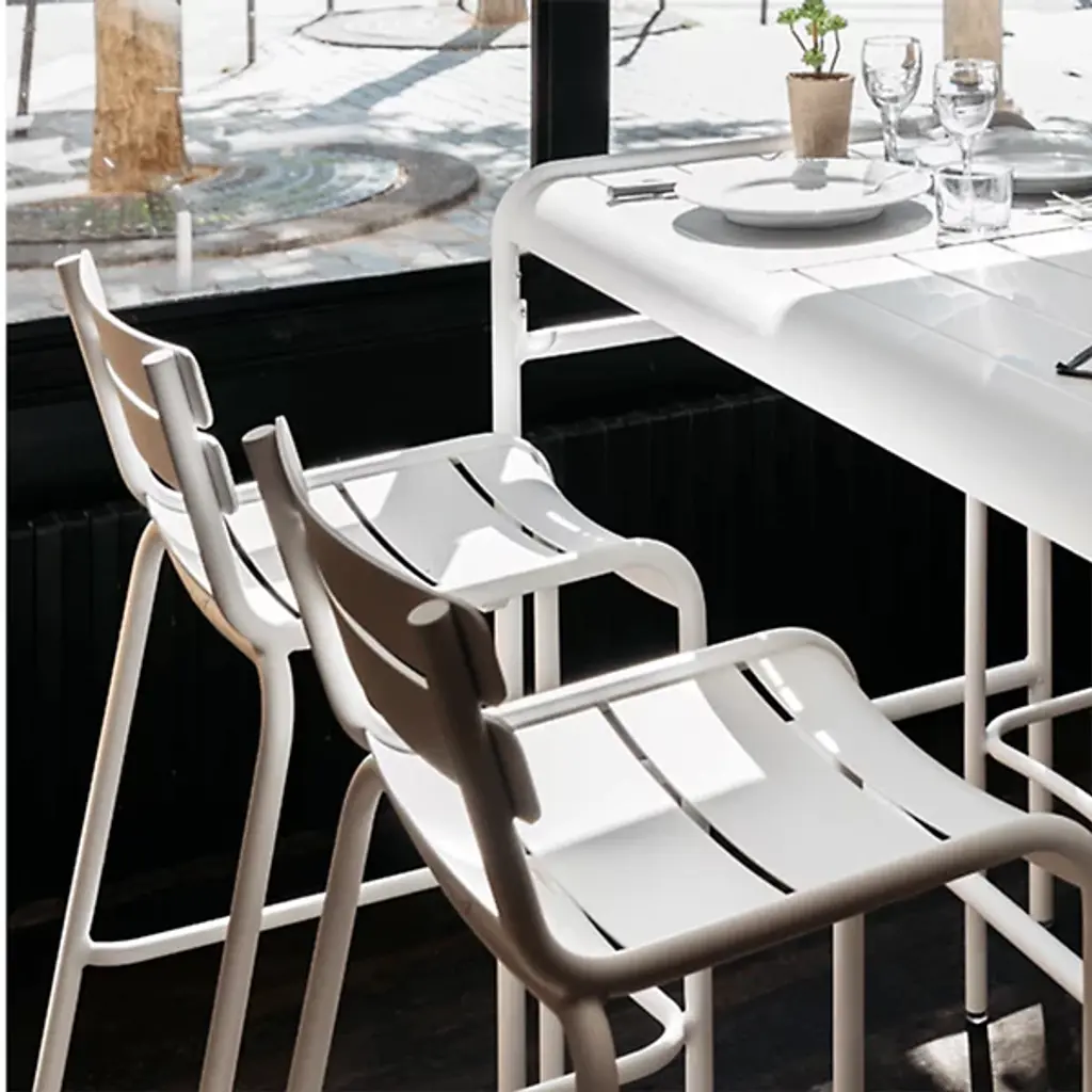 Luxembourg takes flight with the Fermob Luxembourg High Table. This 4-top table has the smooth slatted form that distinguishes the Luxembourg collection, but stands taller for a whole new perspective on outdoor dining. It is made entirely out of lightweight and durable aluminum, in one of more than 20 possible powder coat colors.