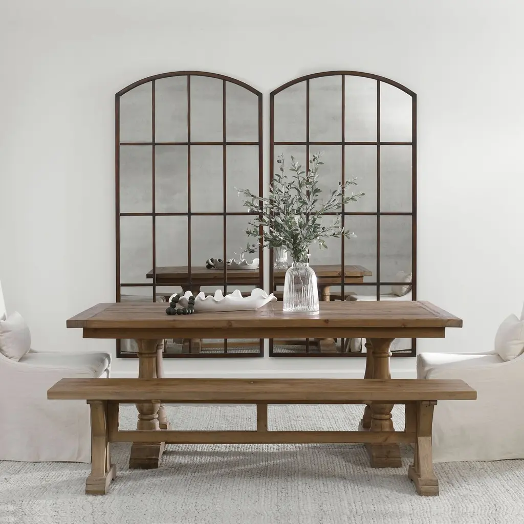 The Lysandra Rectangle Dining Table is a testament to timeless elegance and rustic charm. Crafted from 100% reclaimed lumber, each piece tells a story of its own, with the natural grain and unique distressing lovingly highlighted by a subtle stony gray wash. This table is not just a piece of furniture; it's a living, breathing work of art that evolves with its environment. As the solid wood responds to the gentle dance of temperature and humidity, it may develop small cracks and uneven surfaces, each one a testament to its authenticity and character. This is a table that invites you to gather around, to share in its history, and to create new memories with every meal.