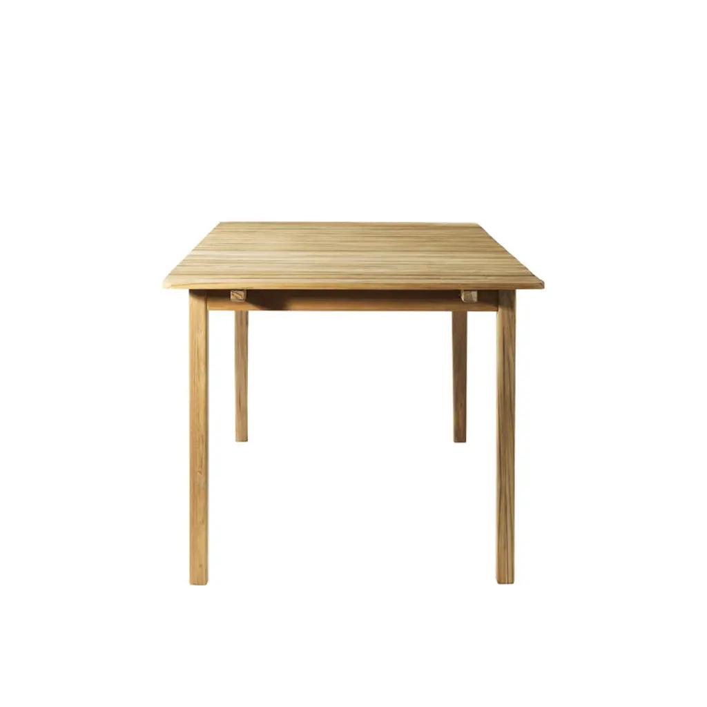 FDB Møbler’s Sammen table invites you to enjoy breakfast or lunch in the sun and spend bright summer evenings out in the garden, gathered together with your loved ones. The large wooden dining table seats 6 to 8 people, but it is also extendable: the table can be extended either with an extra leaf or a plate that attaches two tables together. FDB Møbler's Sammen outdoor furniture exudes both impeccable artisanship and minimalist Nordic elegance, perfectly in line with the traditions of the Danish brand. Designer Thomas E. Alken’s goal was to create a patio furniture set that was just as high quality and stylish as FDB Møbler’s indoor furniture, leading him to choose teak wood as the furniture’s material. The timeless and durable natural material ages beautifully, developing a lovely patina over time, with its golden-brown shade turning into a gorgeous silvery gray – however, the furniture’s original hue can also be maintained by protecting and regularly oiling the furniture. Properly cared for, teak furniture will last from year to year and from decade to decade.