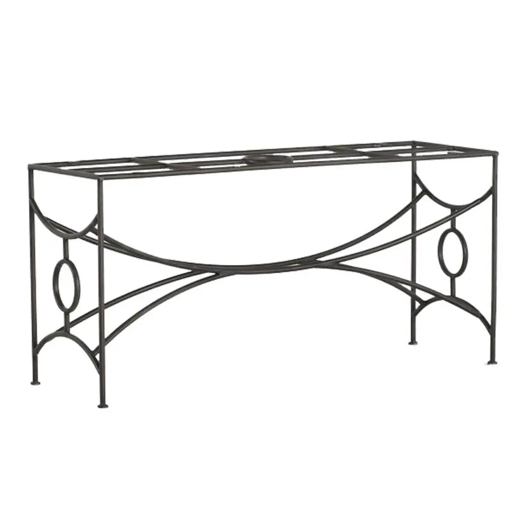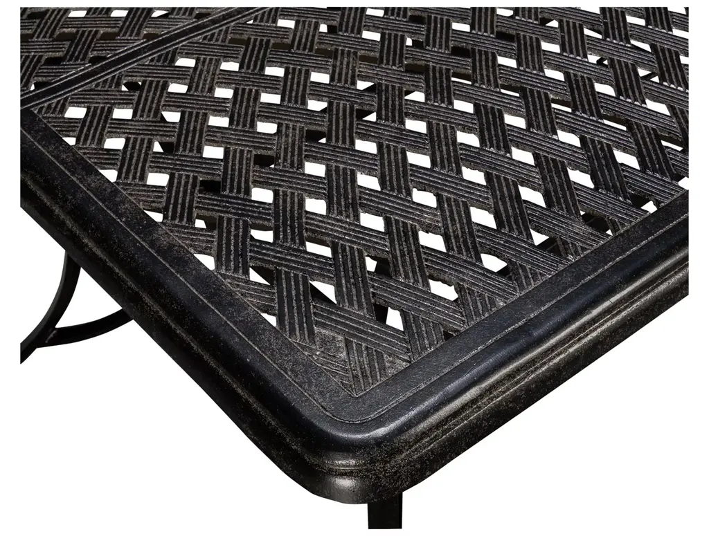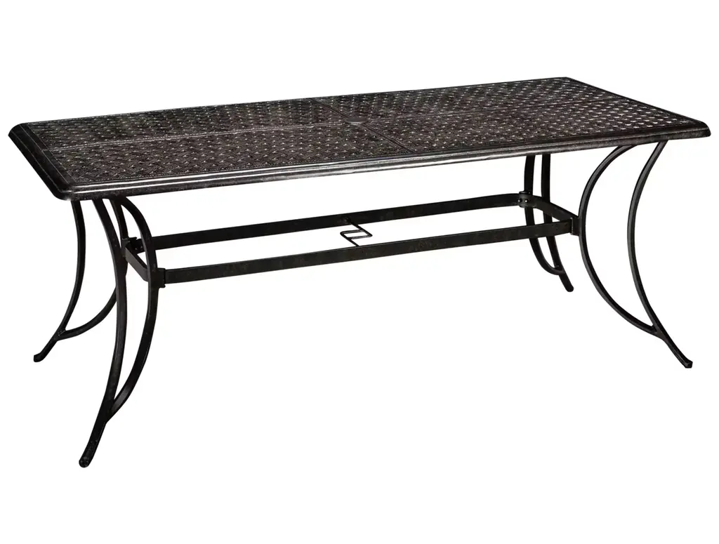 Anchor your outdoor living space with the Madison Rectangular Table from Agio International. This traditional-style dining table features an open gridded top with rounded edges, supported by four splayed legs and a center support to complete the look. There is also a center hole to accommodate a patio umbrella. Made of powder-coated cast aluminum to withstand the elements.