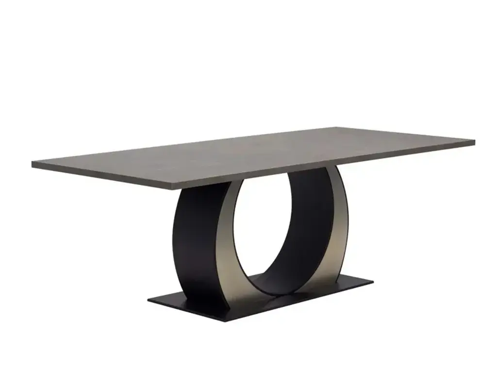 Rectangular table with a wooden top, lacquered basement, and tecnonabuk and metallic finish inserts. Please get in touch with the Concierge for customization options.