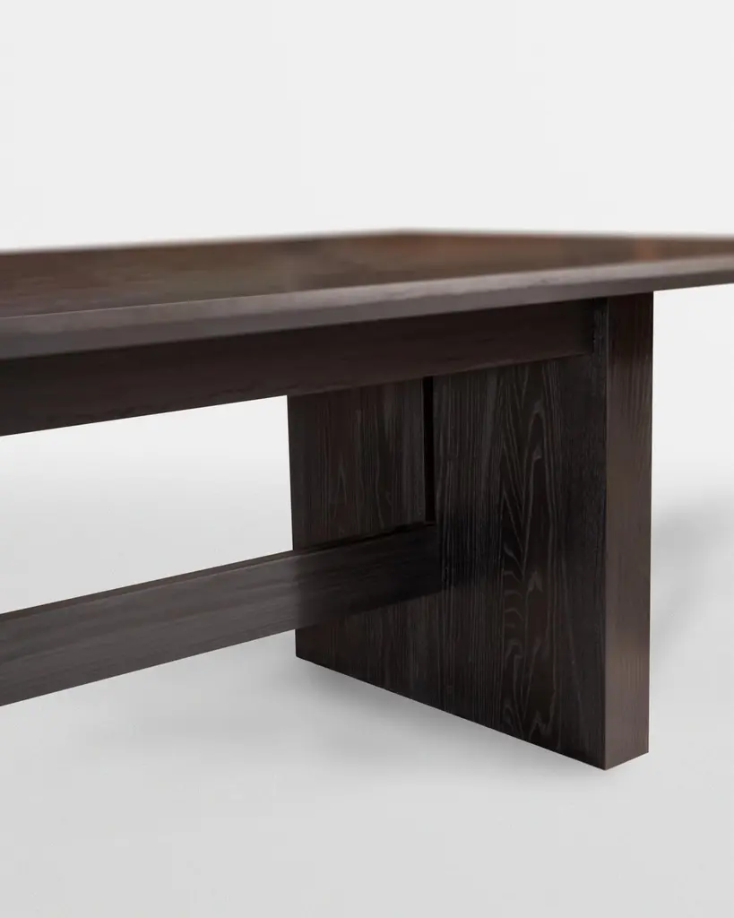 We love the way the grain shouts when you blacken Ash so we modified our Magnolia Dining Table to highlight it. A mix of Modern and Japanese design the Magnolia Conference Table features blackened-ash, a modern trestle-base and exposed joinery. The base is constructed from quarter-sawn blackened ash while the top's chamfered knife edge cleanly accentuates the hand cut bridle joints of the trestle.The table is finished with 100% plant-based, hard-wax oil.