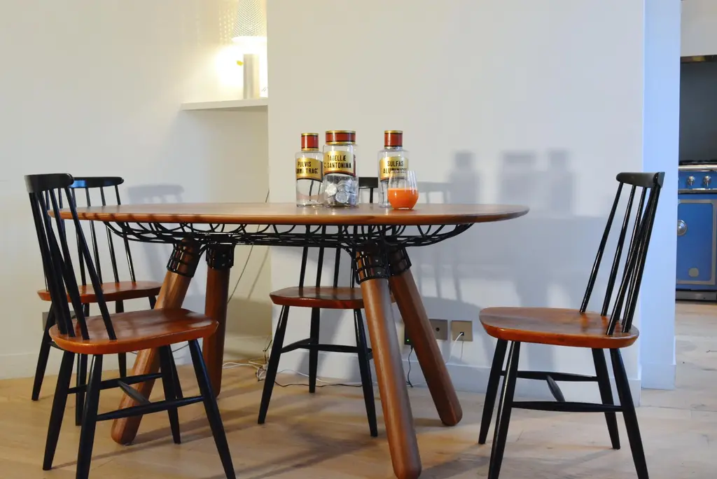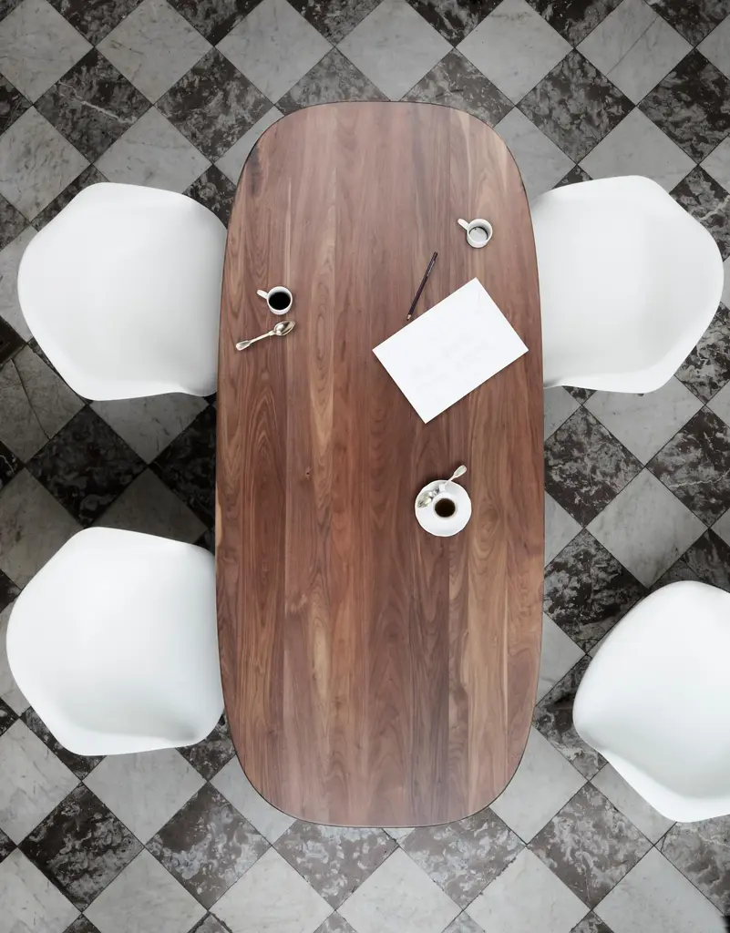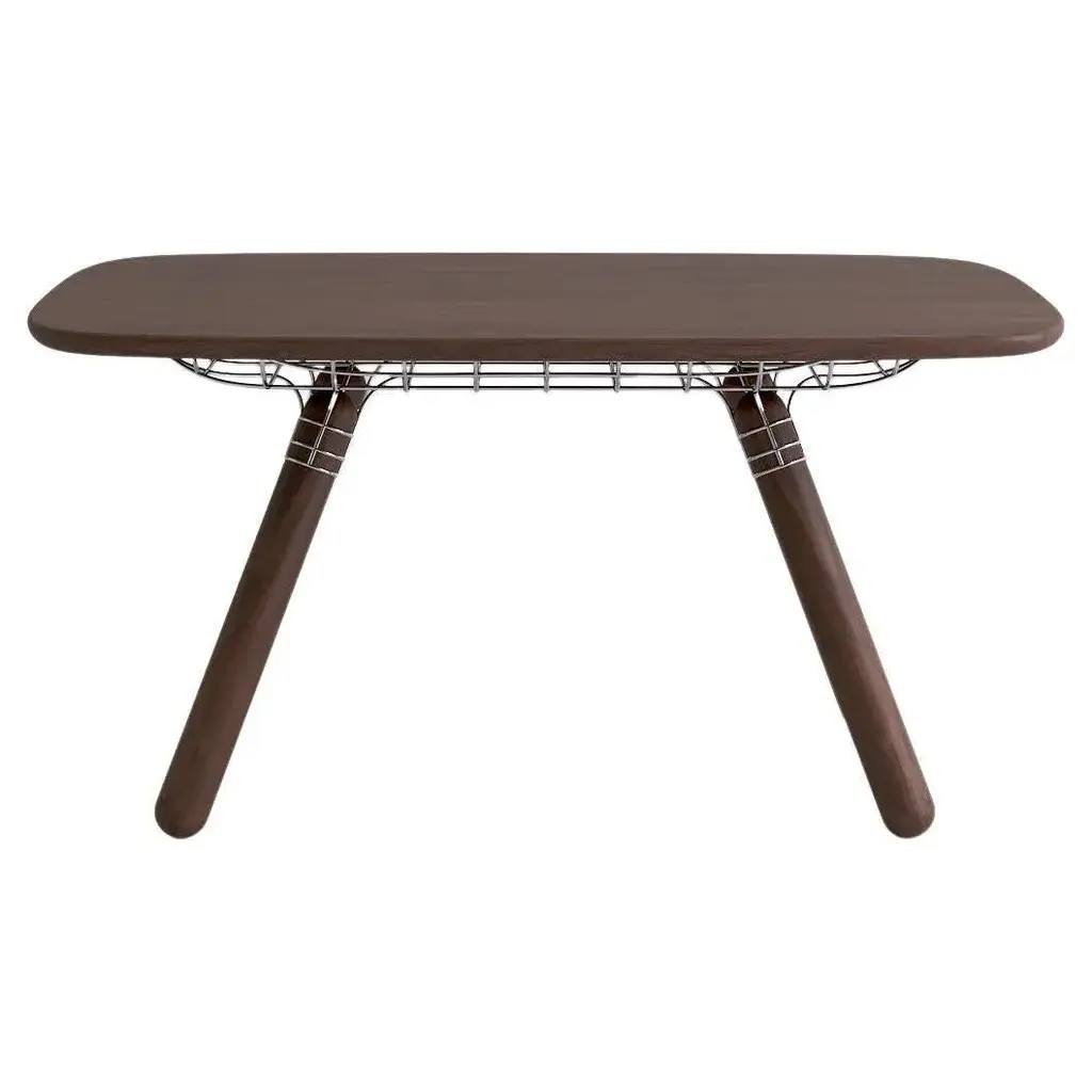 "magnum" walnut dinner table, pierre favresse dimensions: d 150 x w 90 x h 73 cm materials: walnut wood, metal available in 2 sizes: l150cm, l200cm. Magnum is a dinner table. The challenge given to the designer was to create a table, made of bulky elements that should be visually light. Pierre favresse chose to use a thin metal matrix linking to thick wooden, legs to a heavy solid wood tabletop. Pierre favresse was born in brittany in 1979 but soon moved to paris with his family. He studied cabinet making at the prestigious french ecole boulle before enrolling in the ecole nationale supérieure for decorative arts, specialising in design. Following his studies, pierre began to work with designer mathieu lehanneur and became studio director, before founding his own studio in 2010. Pierre’s creations are characterized by their simplicity and balance that marry craftsmanship and state-of-the-art technology. Through design, he plays with many of today’s everyday questions around the use of new materials and innovative functionality, while maintaining a strong focus on social and environmental concerns, be that through reduced manufacturing costs or eco-friendly methods and materials. Pierre is currently head of design for habitat international. Founded in 1964 by sir terence conran, habitat was bought by the french group cafom in 2011 and its headquarters moved to paris. Pierre’s other work can be found around the world with products developed for companies such as cinna, petite friture, specimen edition, super-ette and la chance.